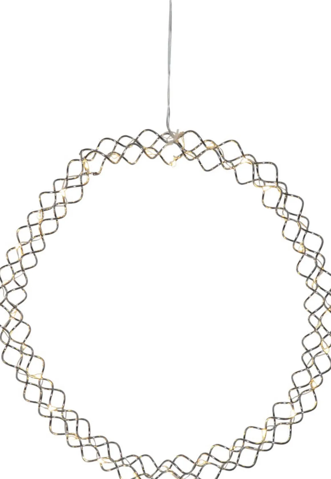 Metallkrans i krom från star trading med en dekorativ dew drops slinga. Batteridriven och givetvis med timer funktion.