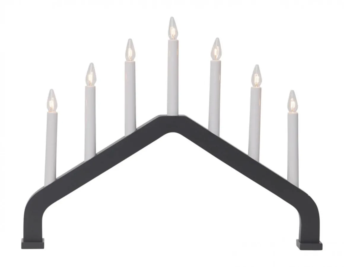 Grafitgrå träljusstake i stilren, enkel design och form med sju ljus för inomhusbruk.