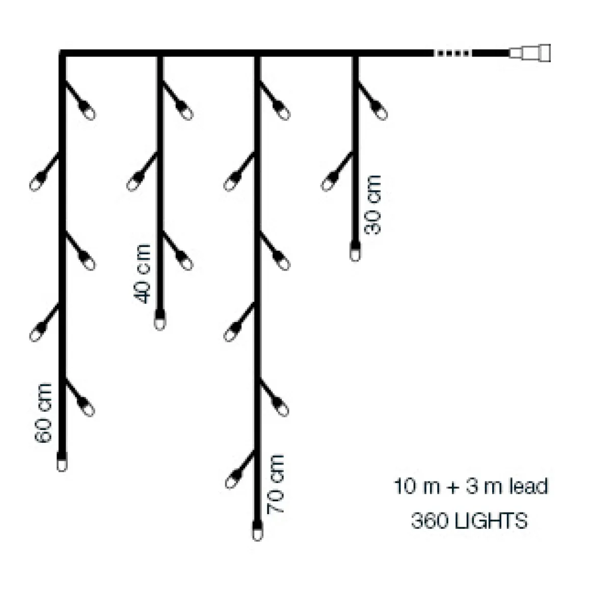 Ice från Lights-On är en 10 meter lång ljusgardin med nedhäng i varierande längder mellan 30cm och 70cm.