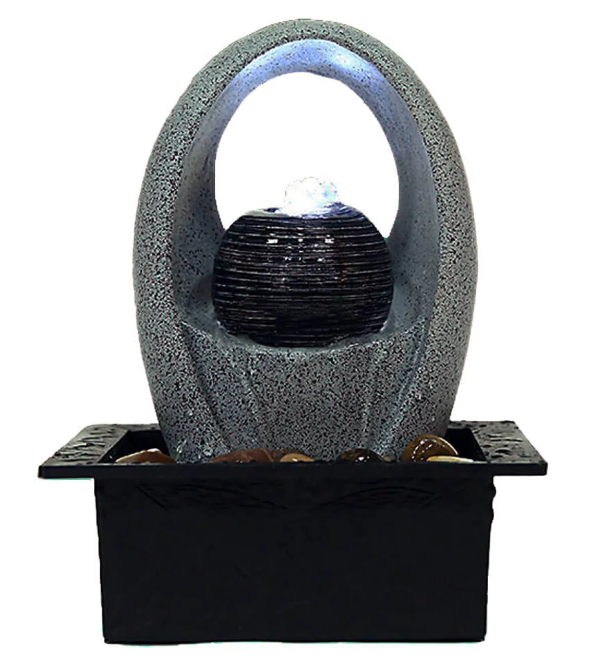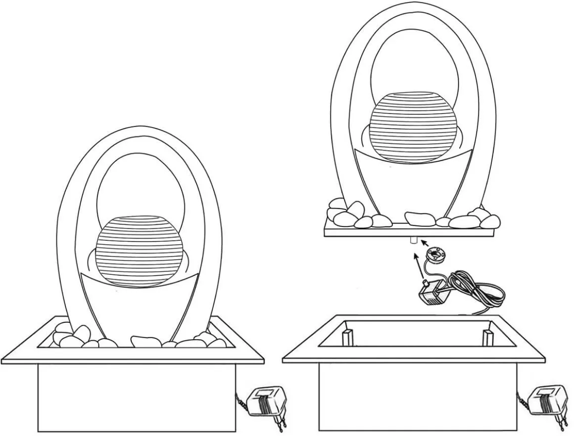 Komplett fontänset i form av ett klot med båge. Enkel installation, fyll endast på med vatten!