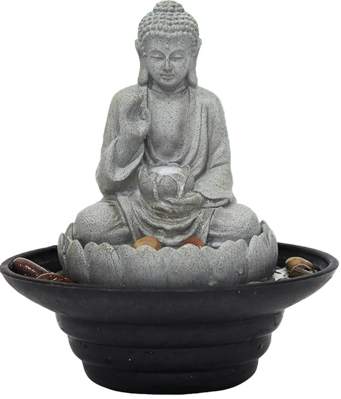 Komplett fontänset med 24,5cm Buddha figur. Enkel installation, fyll endast på med vatten!