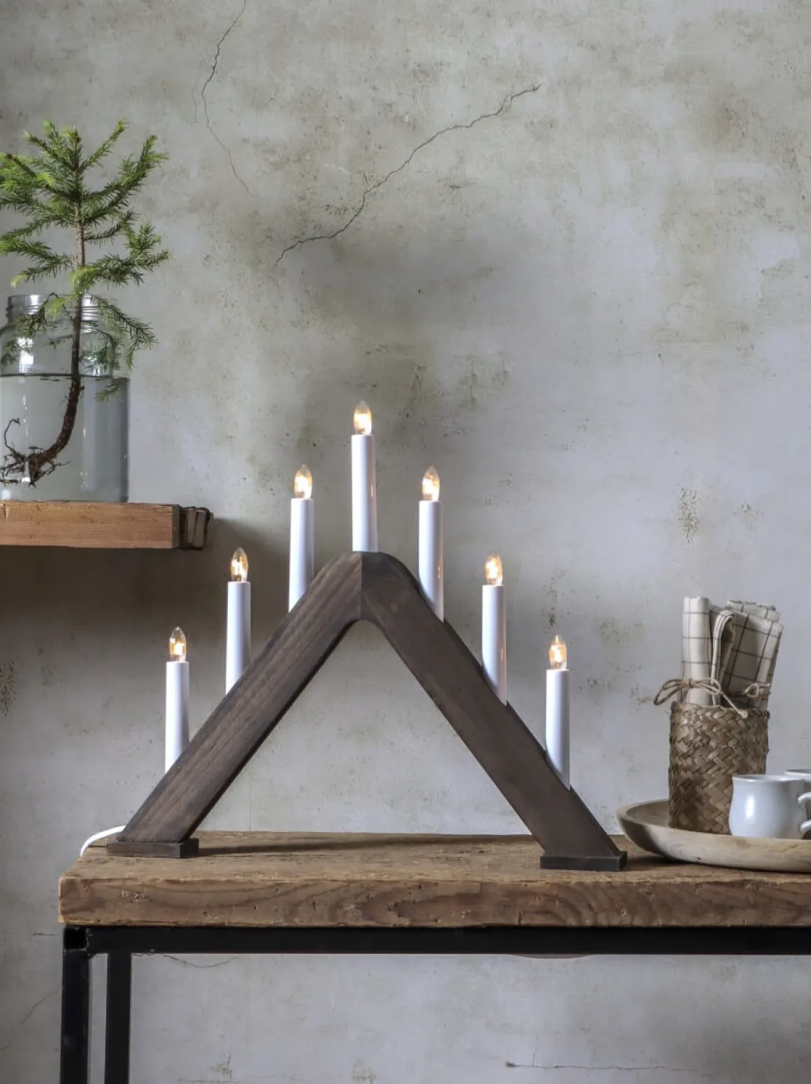 För dig som söker en stilren ljusstake! Jarve passar med sin enkelhet i alla hem å lyser med sina 7 ljuskällor juligt vackert. Jarve finns numera i en mängd olika färger, här ser du hen i brunbetsat trä.