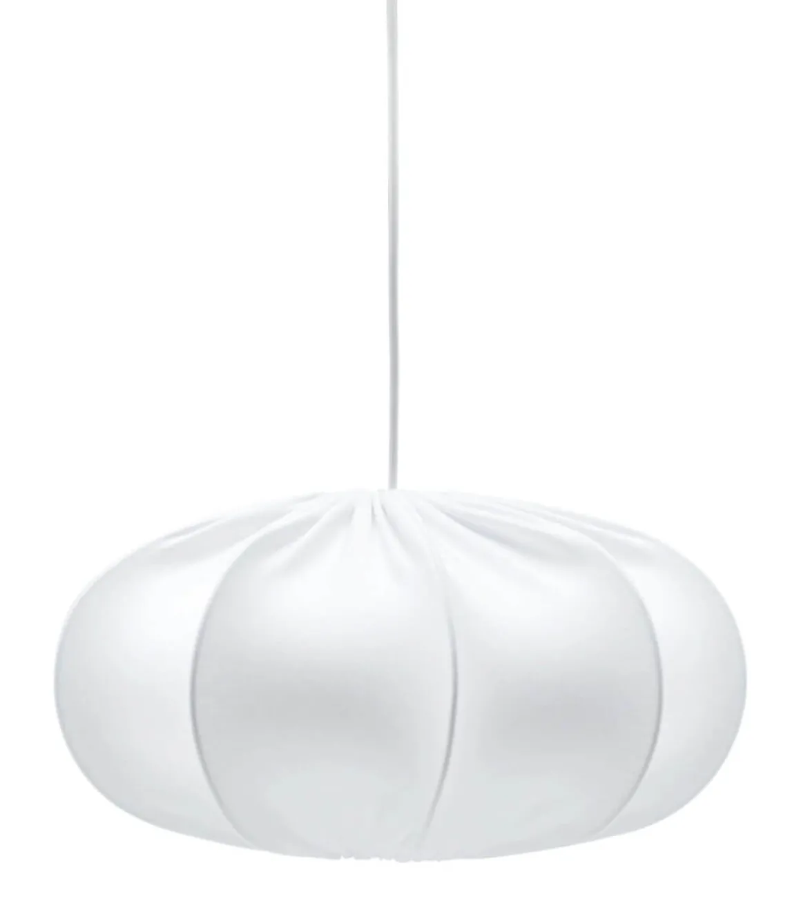 Dalia takskärm ingår i en serie skärmar från PR-Home i olika storlekar och former klädda i vitt jerseytyg. Här i ovalt utförande med en diameter på 40cm och höjd 21cm. E27 ringfäste sitter 6cm ner från skärmens ovankant. Sladdställ ingår ej.