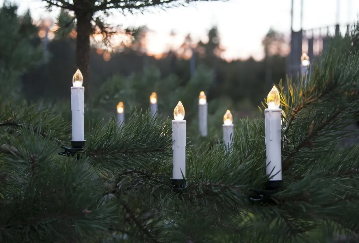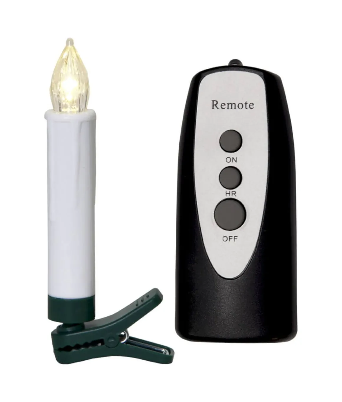 Trådlös julgransbelysning från Star Trading med 10 stycken vita ljus för utomhusbruk. Ljusen ser verklighetstrogna ut med rinnande vax på sidorna. Den inbyggda timern gör det lätt att ställa in när ljusen ska lysa. Inklusive batterier.