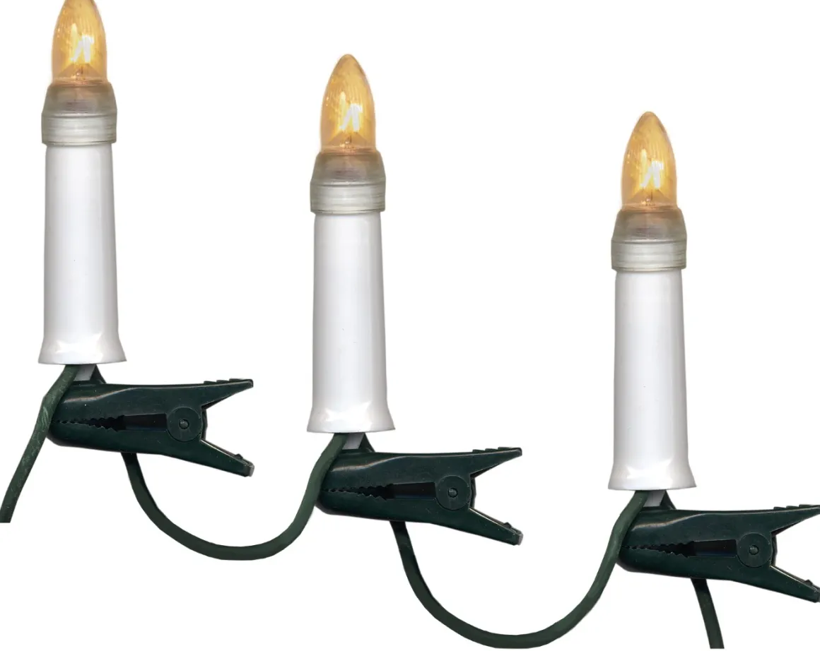 Julgransbelysning med 16 ljus, en gammal klassiker! Slingan är enkelledad vilket innebär att lamporna är monterad i en ring, första och sista lampan sitter alltså närmst kontakten.