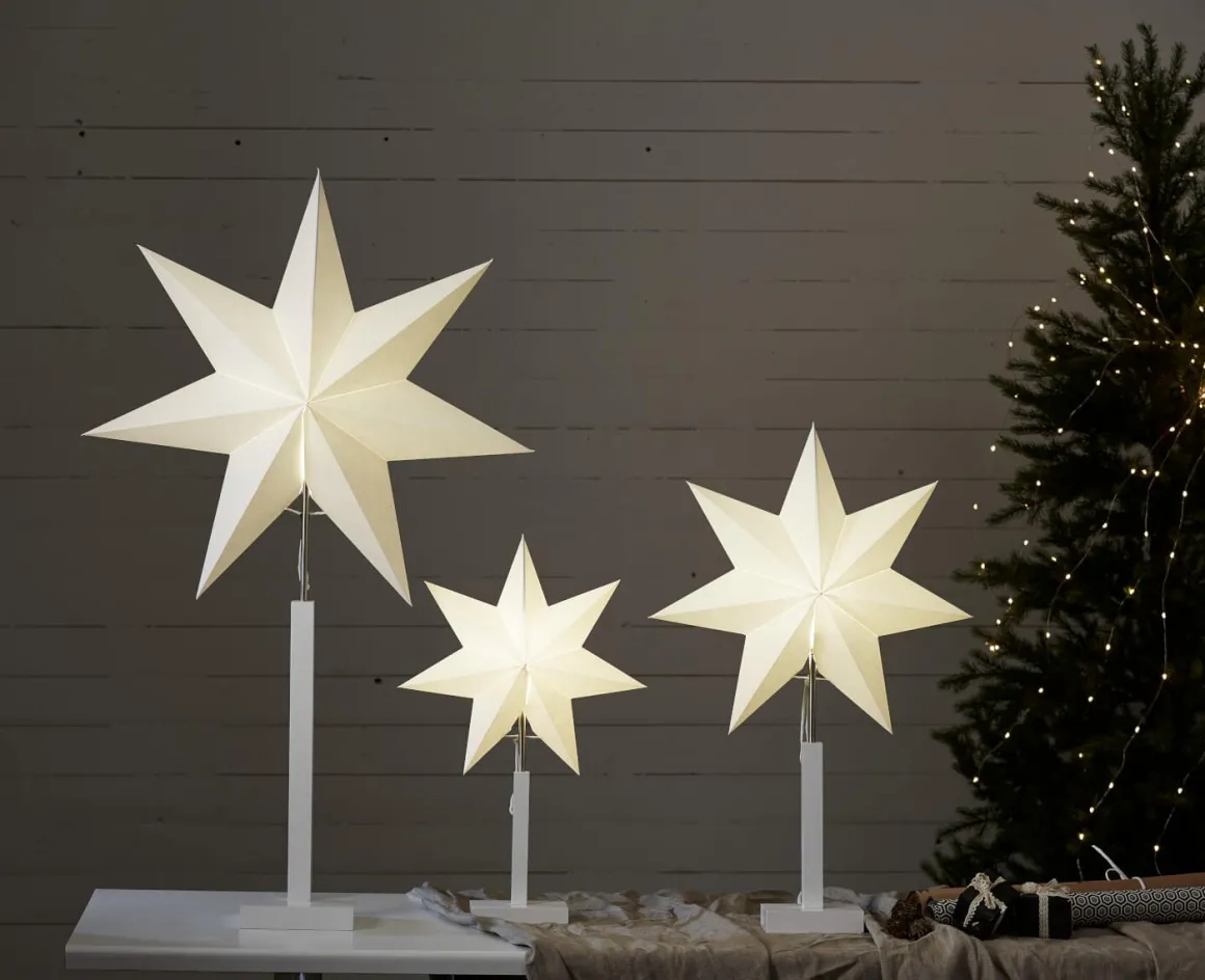 En klassiker i butiken i sitt originalutförande i ek, vi välkomnar nya stilrena Karo med öppna armar, en stilren julstjärna som gör sig i allas våra hem, finns i 3 storlekar här ser du minstingen i familjen.