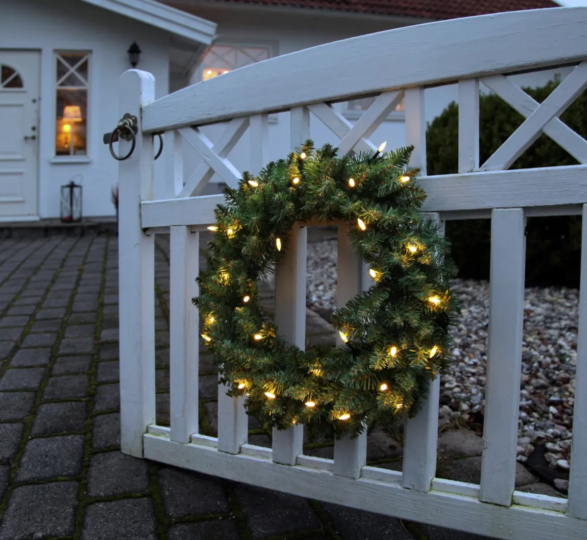 Cirkelformad krans med 30 varmvita LED lampor.