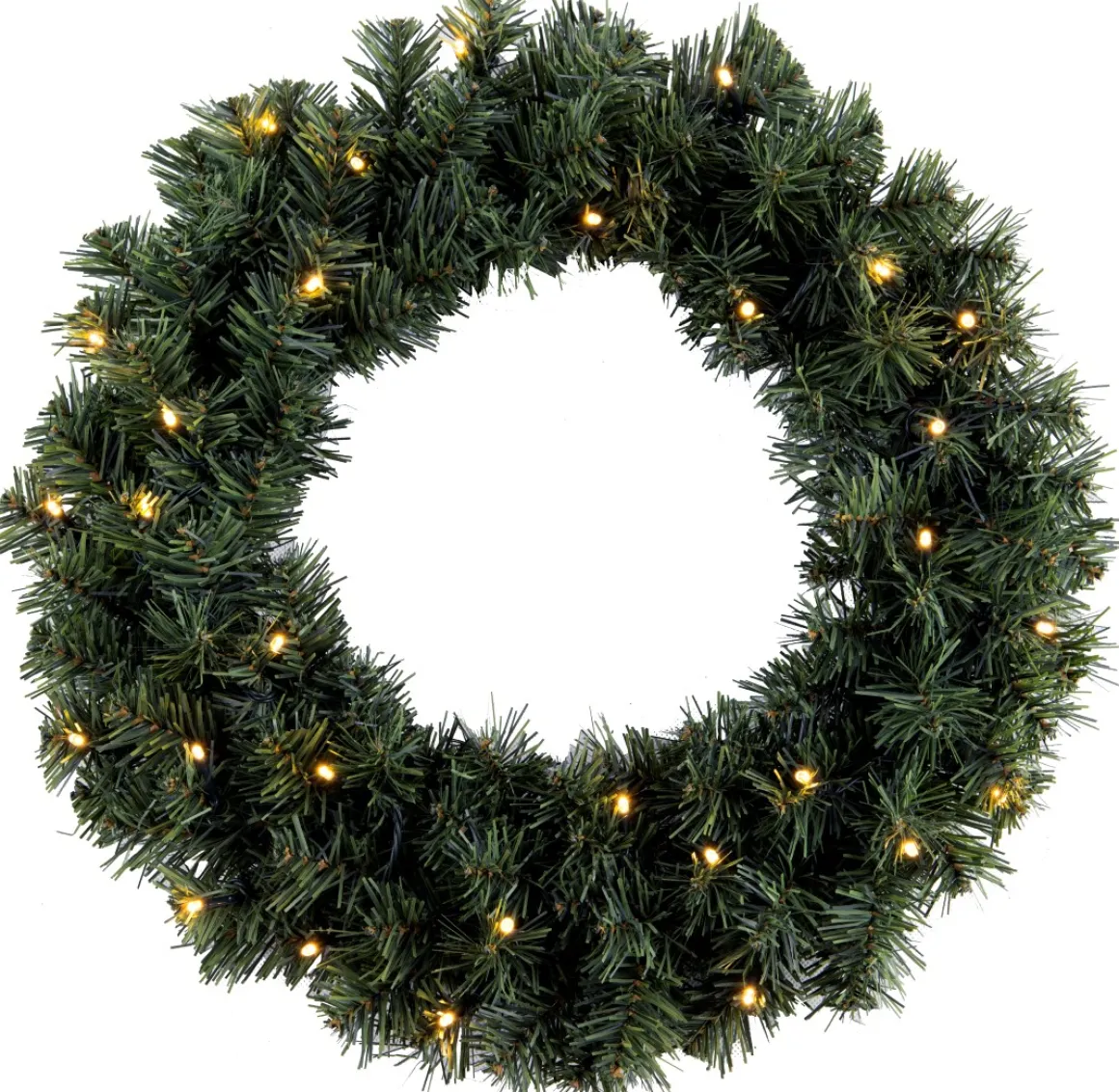 Cirkelformad krans med 30 varmvita LED lampor.