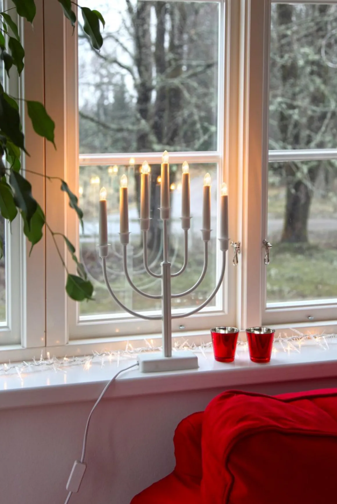 Klassisk, enkel, lättplacerad ljustake som ger ett varmt härligt intryck med sina ljuskällor som ser ut som lågor. En favorit i många hem.