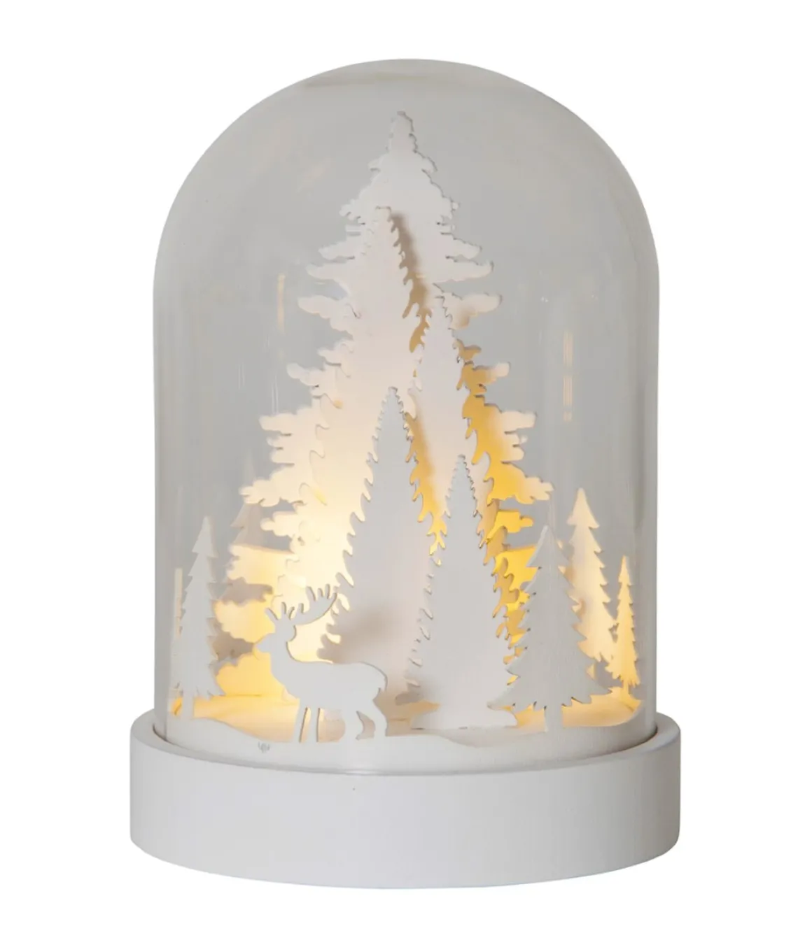 Så vacker liten glaskupol med laserskuren dekoration i trä inuti. Underverket drivs med batteri och är på så sätt lättplacerad i flesta hem. Givetvis med inbyggd timer! Vi bara älskar denna lilla nyhet!