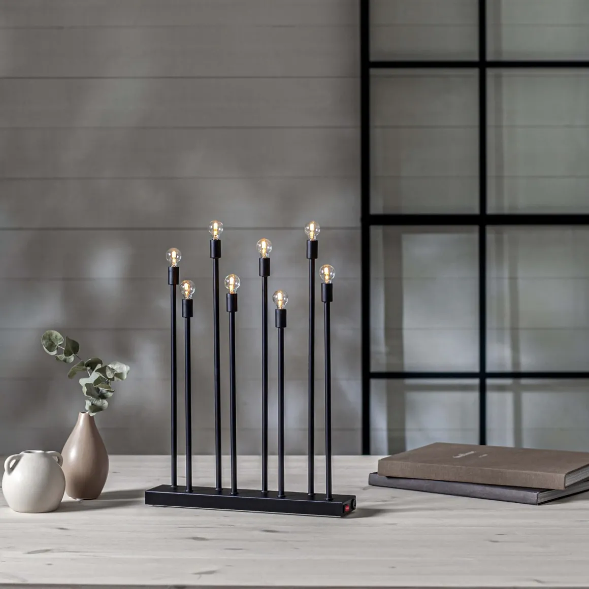 Denna moderna adventsljusstake i svart metall från Star Trading är både stilren och praktisk. Med sina runda LED-lampor sprider den ett stämningsfullt ljus, perfekt för fönster, bänkar eller bord. Eftersom ljusstaken är uppladdningsbar krävs inget eluttag i närheten, vilket gör den lätt att placera var som helst i hemmet. Skapa en mysig julstämning med denna eleganta och flexibla ljusstake i svart från Star Trading som passar i alla rum!