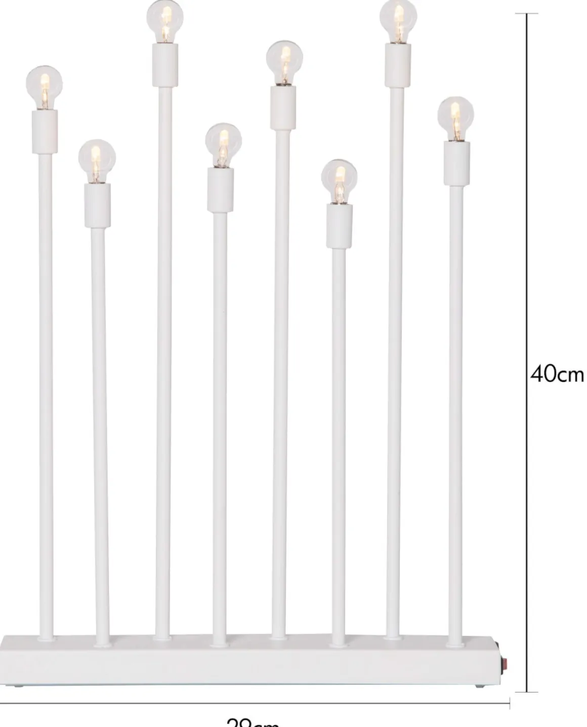 Denna moderna adventsljusstake i metall från Star Trading är både stilren och praktisk. Med sina runda LED-lampor sprider den ett stämningsfullt ljus, perfekt för fönster, bänkar eller bord. Eftersom ljusstaken är uppladdningsbar krävs inget eluttag i närheten, vilket gör den lätt att placera var som helst i hemmet. Skapa en mysig julstämning med denna eleganta och flexibla ljusstake från Star Trading som passar i alla rum!