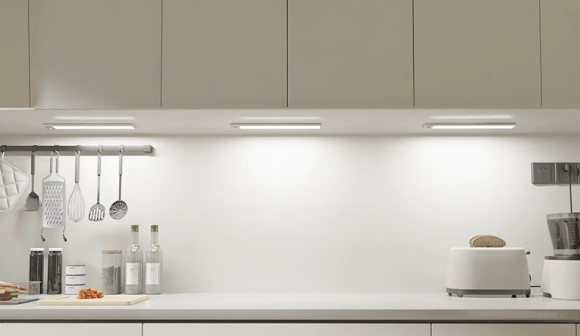 Uppladdningsbar skåpsbelsyning med sensor 40 cm, enkel montering utan borrning och verktyg.