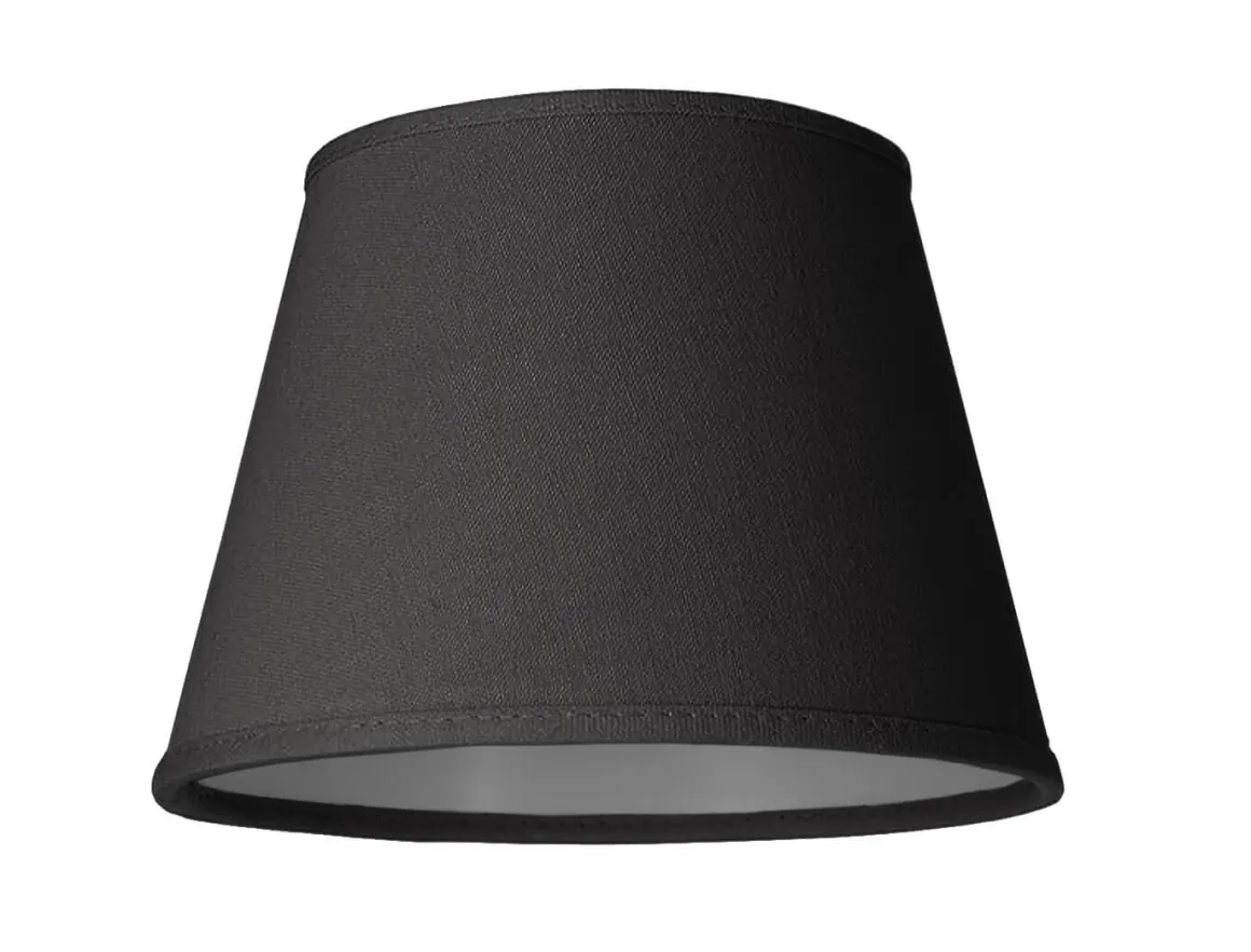Svart Linne lampskärm från Cottex med en höjd på 14,5 cm bredd uppe 13cm, bredd nere 20cm med klotfäste.
