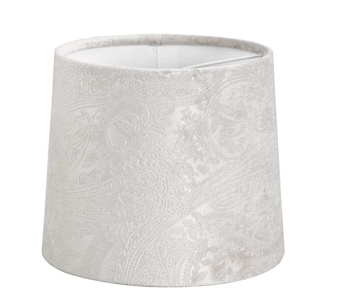 Läcker sammetsskärm från Oriva med ett härligt dovt mönster, skärmen finns i flera storlekar och färger. Här ser du Paisley 16 cm i grått.
