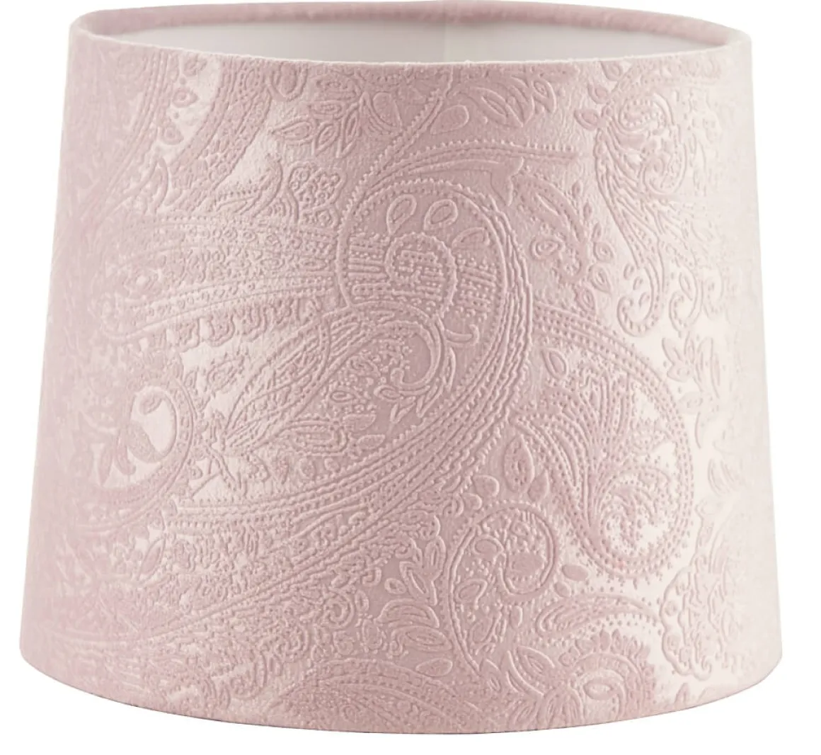 Läcker sammetsskärm från Oriva med ett härligt dovt mönster, skärmen finns i flera storlekar och färger. Här ser du Paisley 20 cm i Rosa.