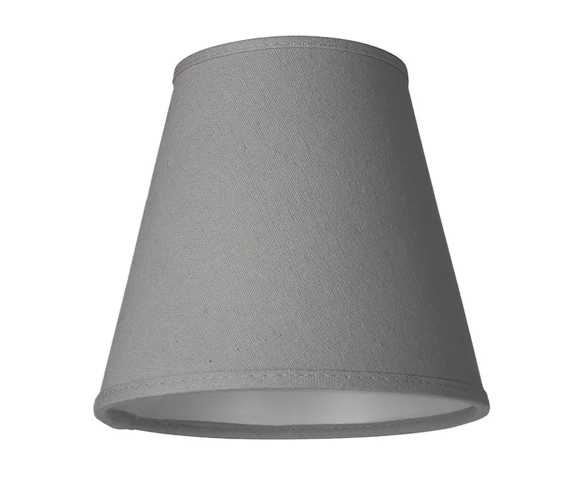 Grå lampskärm i linne från Cottex med en höjd på 15,5 cm, bredd uppe 10 cm samt bredd nere 17 cm. Skärmen fäster du enkelt på din lampa med klotfäste.