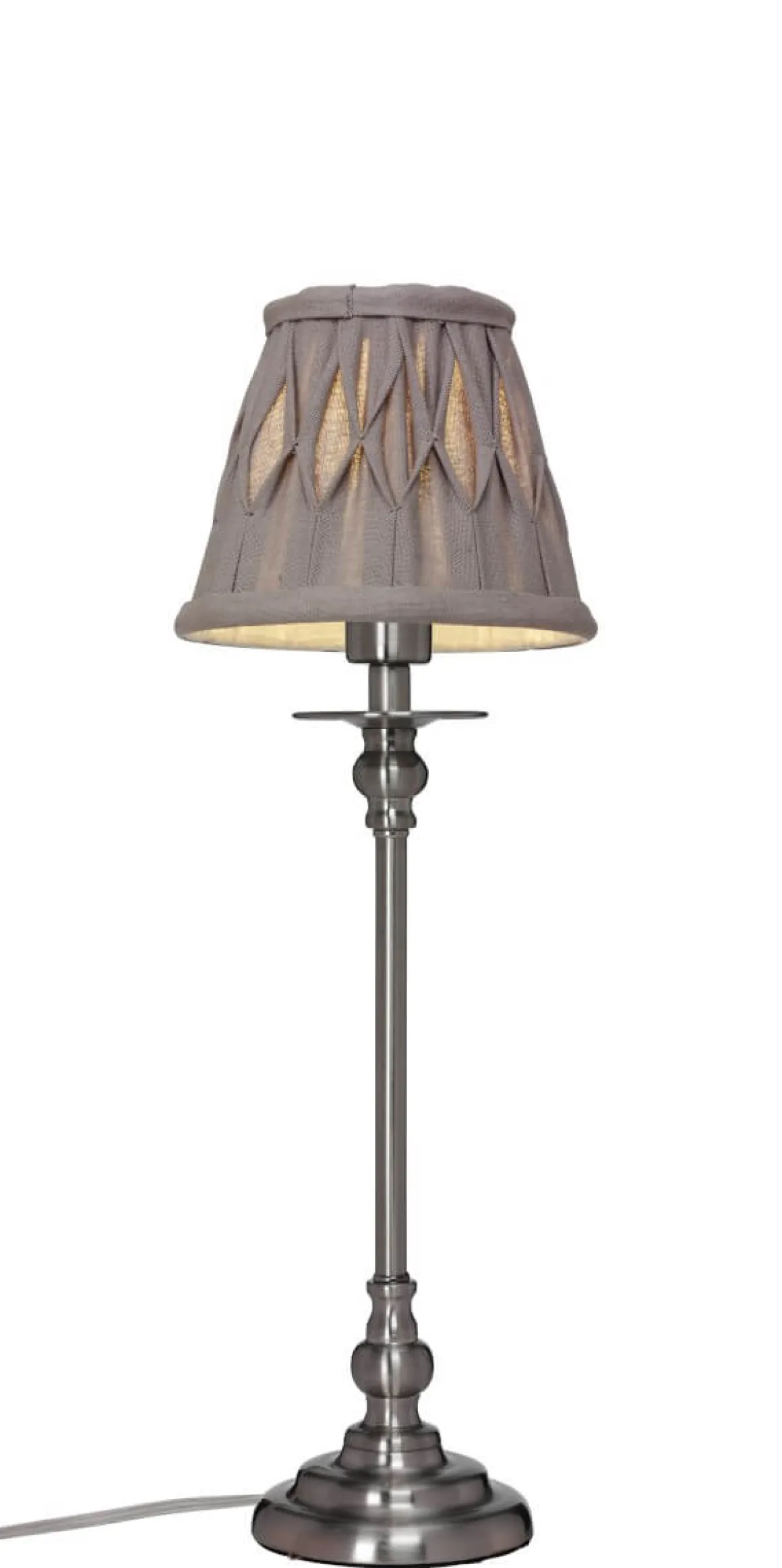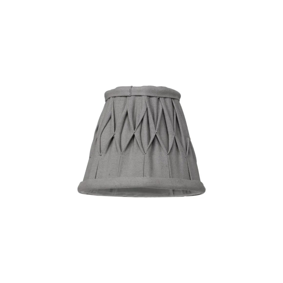 Grå veckad Linne lampskärm från Cottex med en höjd på 11 cm. Skärmbredd har klotfäste och är 8 cm uppe samt 14 cm nere.