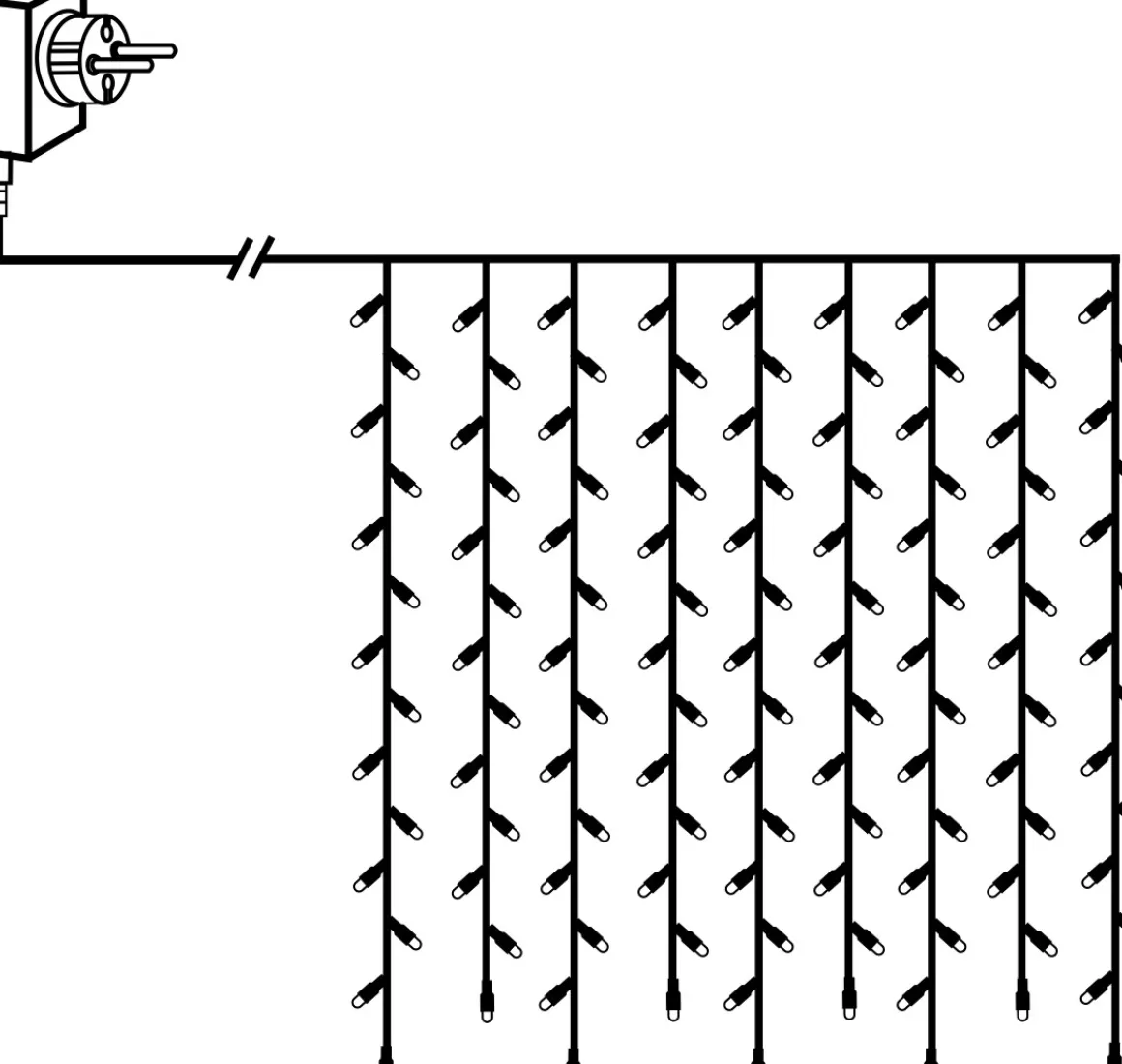 Ljusgardin med svart kabel och 100 varmvita LED-ljuskällor. Serie Mirco LED är perfekt att dekorera med utomhus.