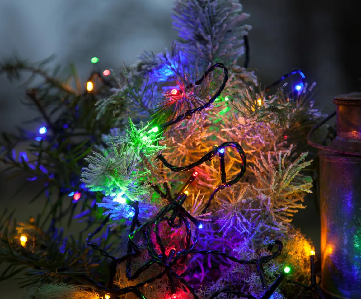 18 meter lång ljusslinga med 180 flerfärgade LED-ljuskällor och svart kabel. Serie Mirco LED ljusslinga är en vacker ljusslinga att dekorera med utomhus.