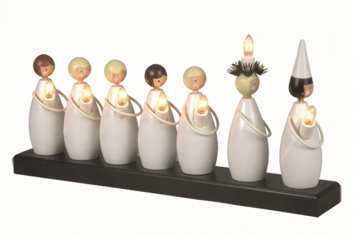 Luciatåg en träljustake som de flesta känner igen Lucian, stjärngossen och de 5 tärnorna lyser upp vackert i vintermörkret
