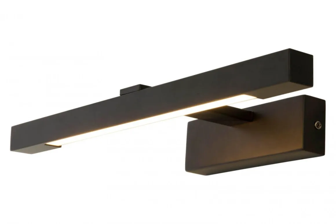 Stilren och modern svart badrumslampa från Aneta belysning med integrerad LED på 9 W med ett ljusflöde på 430 Lumen, perfekt armatur att placera ovanför badrumsspegeln. Lucca har dessutom en väggarm som bygger ut 20 centimeter vilket gör att hen i vissa fall även kan monteras ovanför ett badrumsskåp och ändå nå fram över skåpet med lyset.