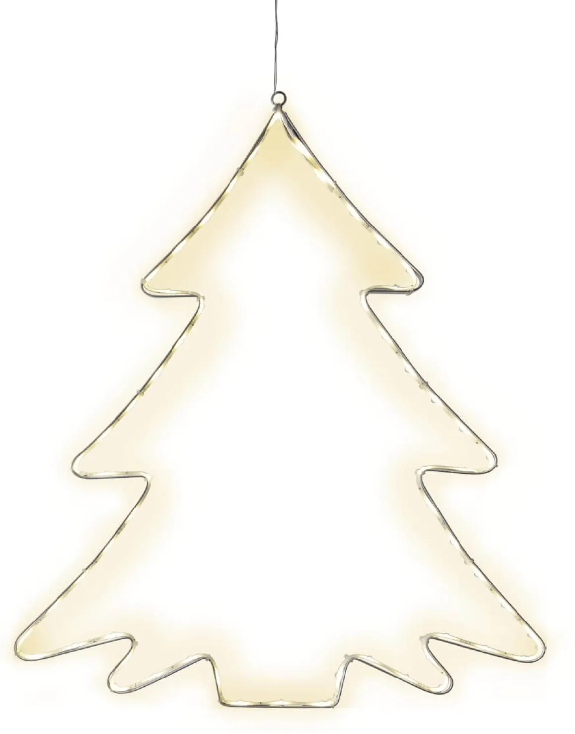 Härlig siluett gran för utomhusbruk. Granen har 60 ljuskällor med varmvitt sken som lyser upp inuti siluetten. En underbar juldekoration att ha hängandes i trädgården eller inomhus.