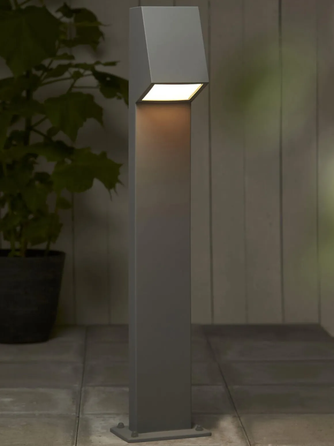 Luton pollare från PR-Home. Grå pulverlackad metall gör att hen tål väder och vind. Luton lämpar sig bäst längs med en gång eller en uppfart där du endast önskar få ljuset åt ett håll.