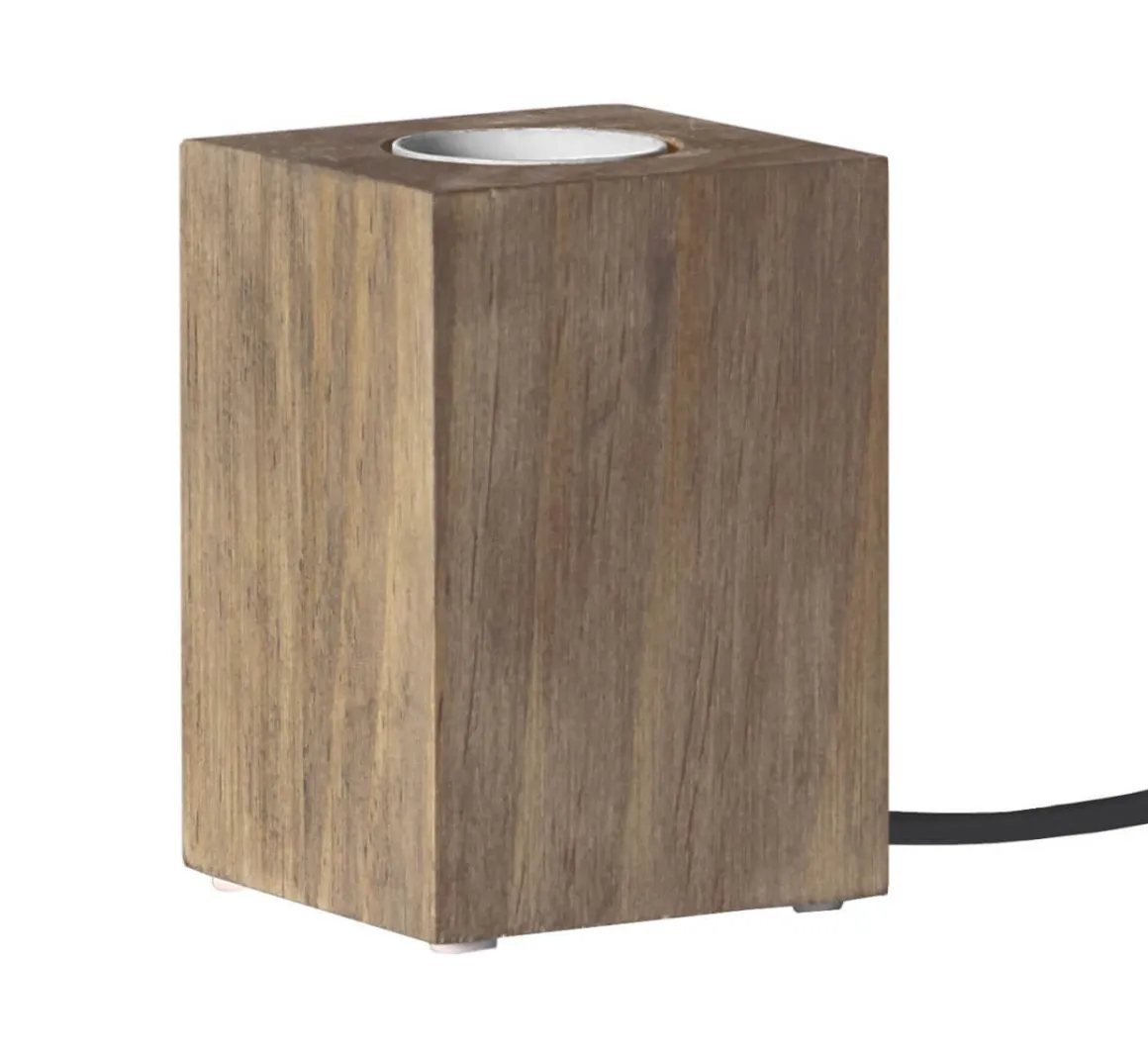Brun kvadratformad lampfot av trä med E27 sockel. Kombinera lampfoten med en snygg ljuskälla för ett modernt utseende. Gör sig väldigt bra på bordet och i fönstret.