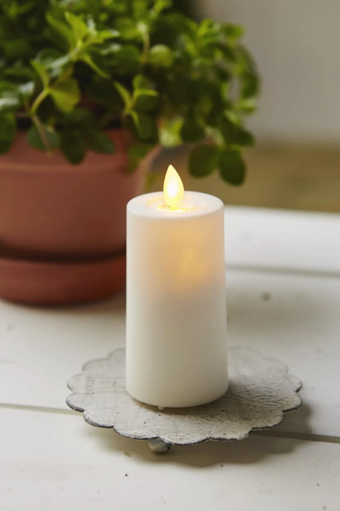 Vårt mest verklighetstrogna ljus i vit plast, med flickande låga som rör på sig. Ljuset har ett behagligt varmvitt sken, styrs gör det enkelt med den inbyggda timern.