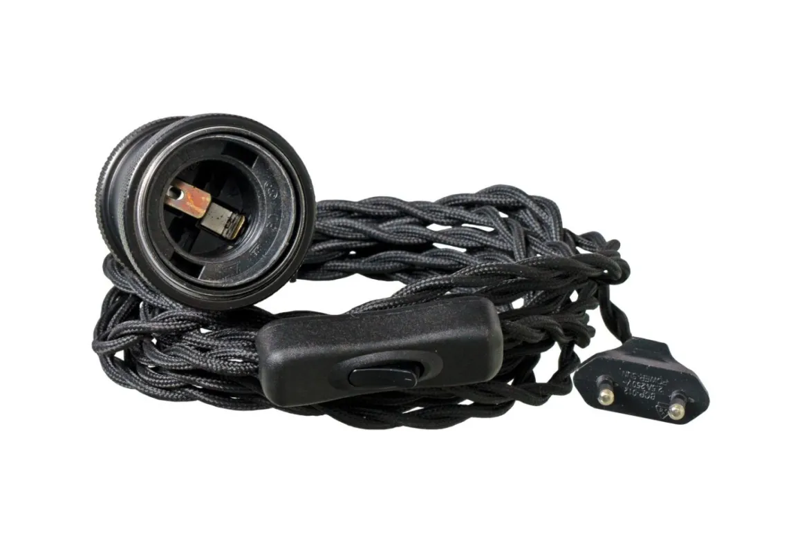 vackert designat lampupphäng i Svart med svart tvinnad textilsladd.