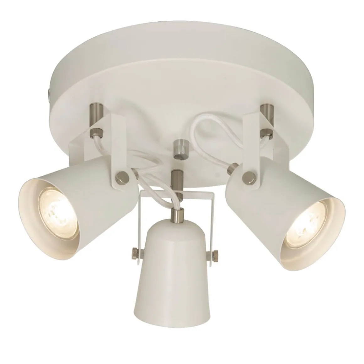 Metz är en ny liten familj med lampor framtagna av Aneta Belysning. Här ser du Metz takrondell i vit med härliga detaljer i borstad stål. En perfekt lampa för dig som vill kunna rikta ljuset men ändå vill ha något roligare än en vanlig takspot. Självklart levereras Metz med krokupphäng för en snabb och smidig installation. Takkontakt köpes separat.