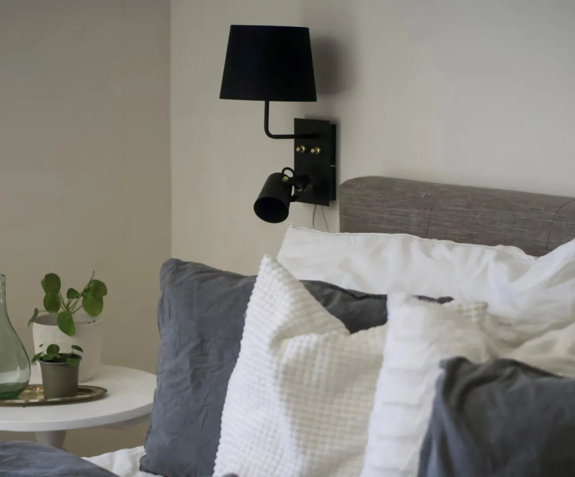Metz är en ny liten familj med lampor framtagna av Aneta Belysning. Här ser du Metz vägglampa i svart med härliga mässingsdetaljer såsom dimmern som du finner på väggplattan dessutom har den här modellen en kombinerad upplampa med textilskärm. En perfekt lampa för dig som vill kunna rikta ljuset men ändå vill ha något roligare än en vanlig enkel spotlight.