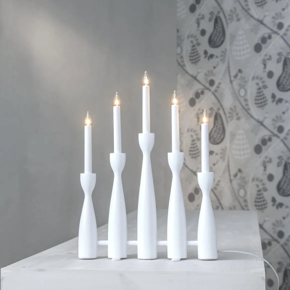 Midja 2.0! Ja verkligen! Jag vet inte om du minns den gamla klassikern midja med raka käglor? Här är i alla fall den moderna uppgraderade versionen. Helt utan förvarning och så fantastiskt vacker. Denna ljusstaken får mig att längta till julen redan nu (när det i skrivandets stund är 10 månader kvar). Midja 2.0 görs i 4 olika dova färger, här ser du henne i vitt.