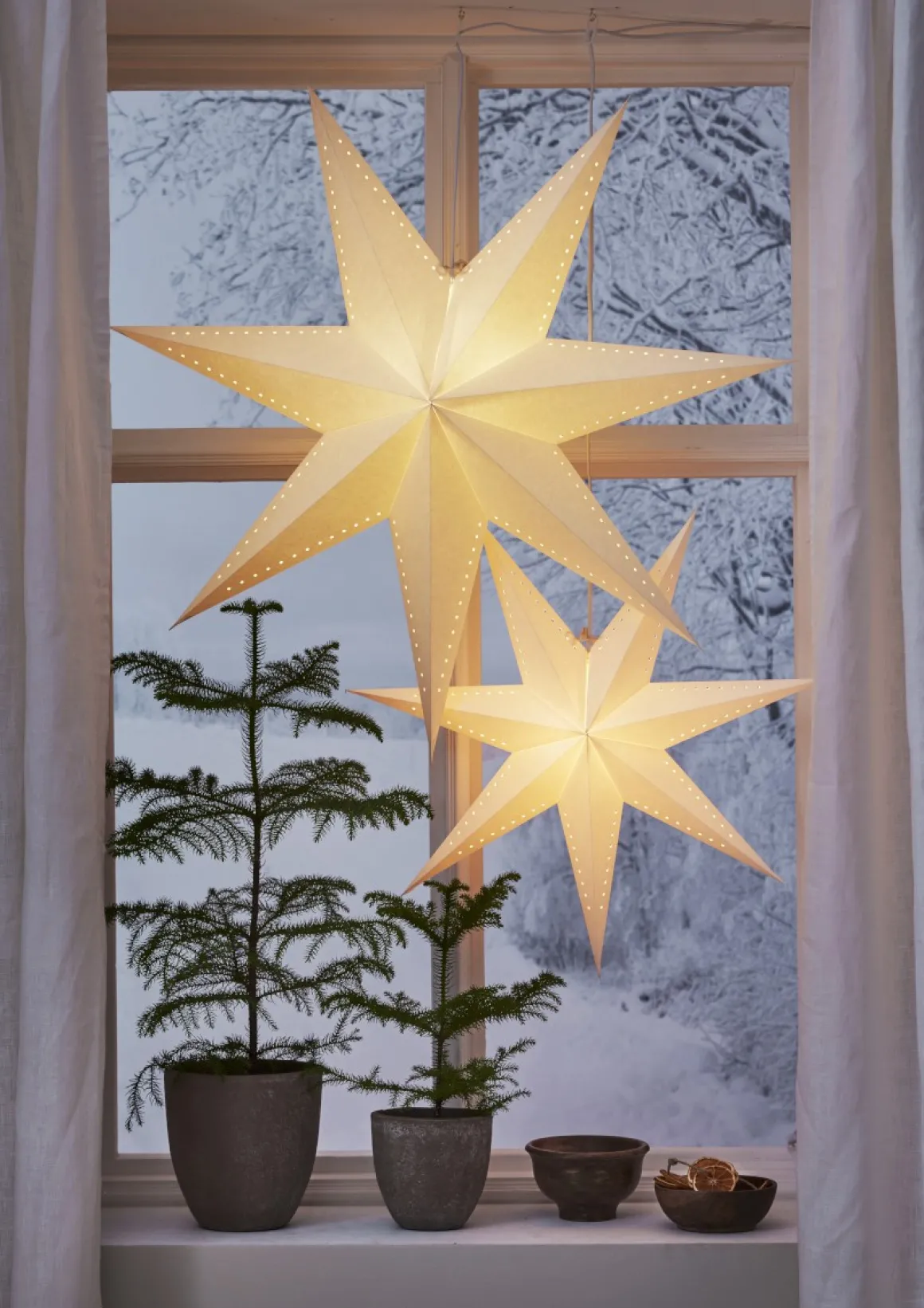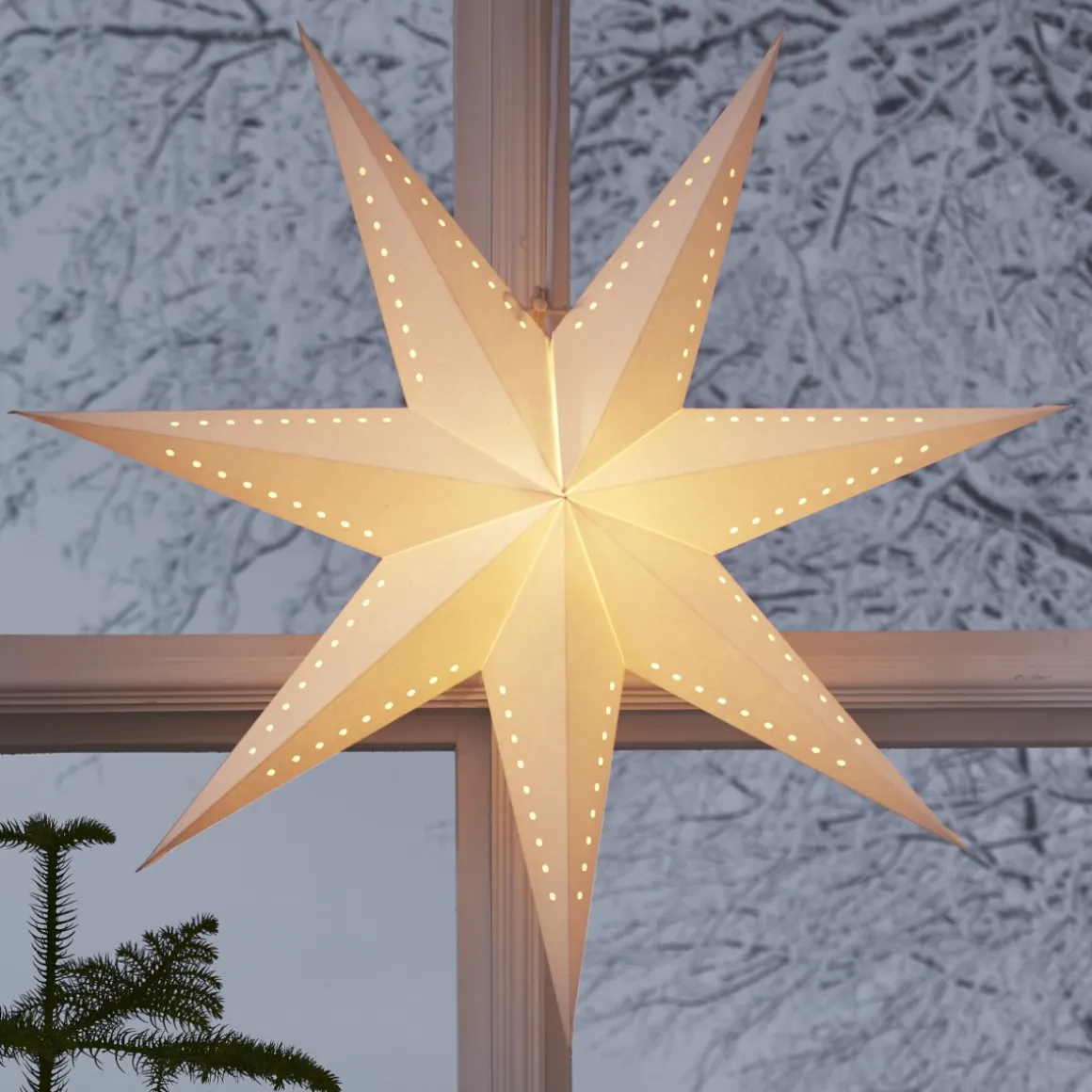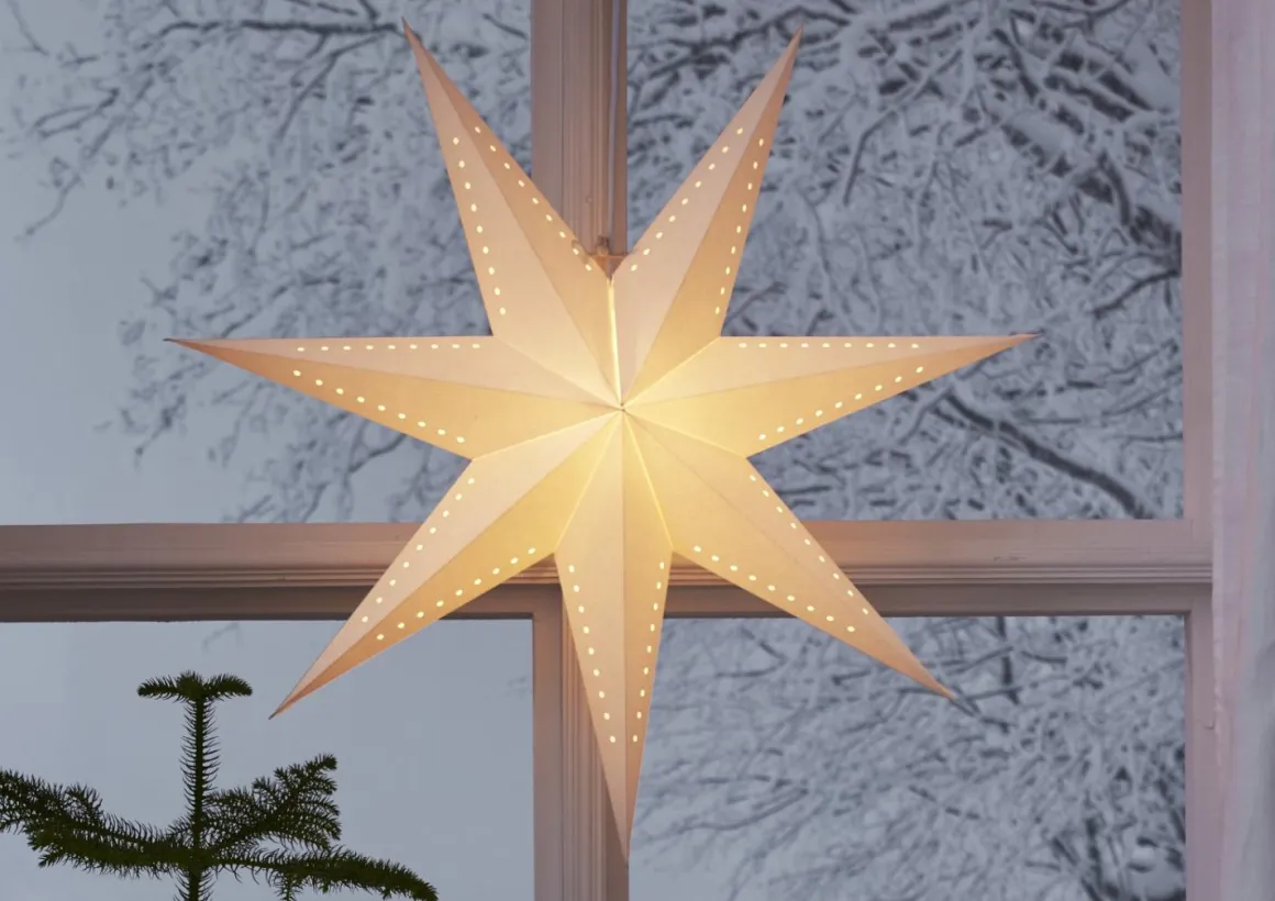Skapa julmagi med vår vita adventsstjärna! Stilrent hålmönster i FSC®-märkt papper ger en elegant touch. Häng en eller flera i fönster eller på vägg för festlig stämning. Komplettera med sladdställ och ljuskälla för ett varmt sken. Perfekt dekoration till advent och jul!