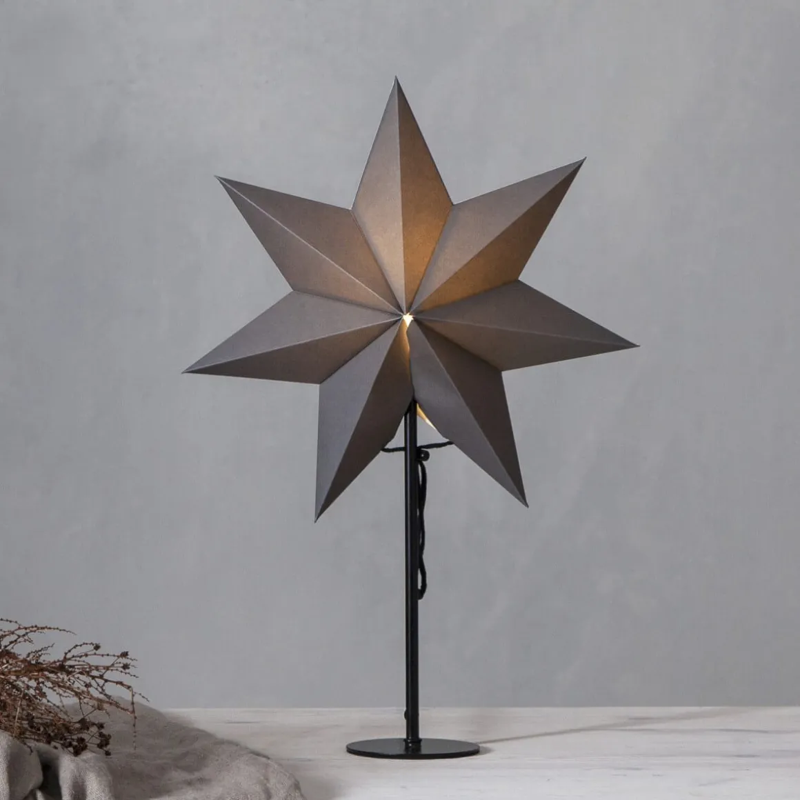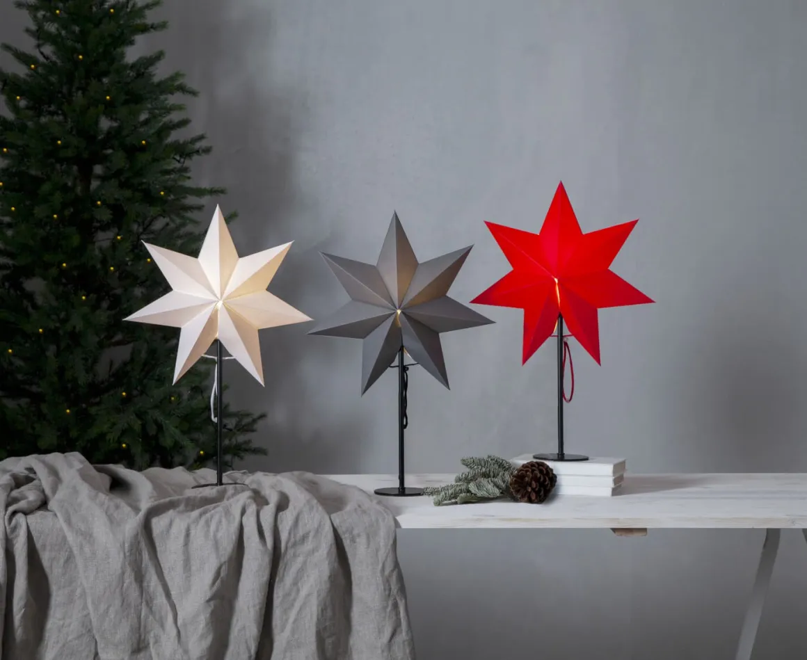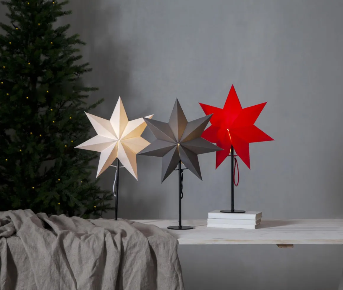 Liten nätt julstjärna i sin enkelhet. Svart fot i metall med tillhörande grå stjärna i en stilren kombination. Mixa finns i 3 färger och här ser du den i grå/svart.