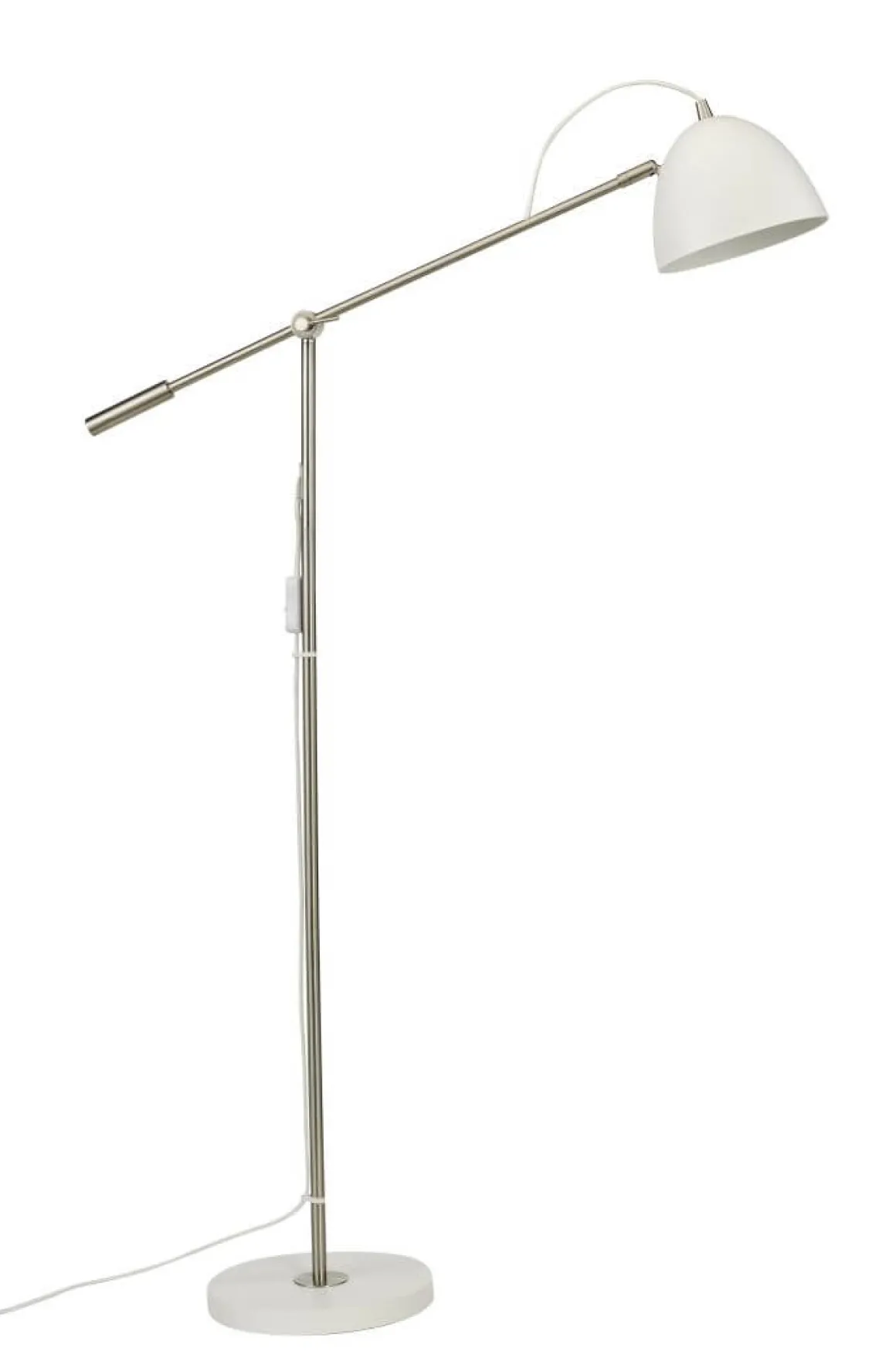 Montreal Golvlampa från Oriva är perfekt golvlampa för dig som söker det där lilla extra. Montreal har en ställbar arm och ett ställbart lamphuvud så att du själv kan få lampan precis så som du vill ha den. Brytaren hittar du praktiskt monterad på sladden som löper längs med lampan. Här ser du Montreal i kombinationen vit/borstad stål men hen finns även i svart och som en bordsmodell för dig som vill kombinera.