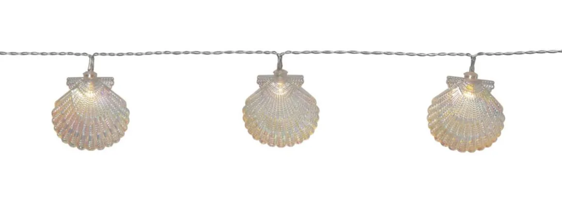Vacker Ljusslinga dekorerad med 10 st transparanta snäckor. Placera ljusslingan på ett bord, hängandes på en vägg eller varför inte i granen. Dekorativ inredning som ger ett mysigt sken i hemmet. Batteribox med timerfunktion