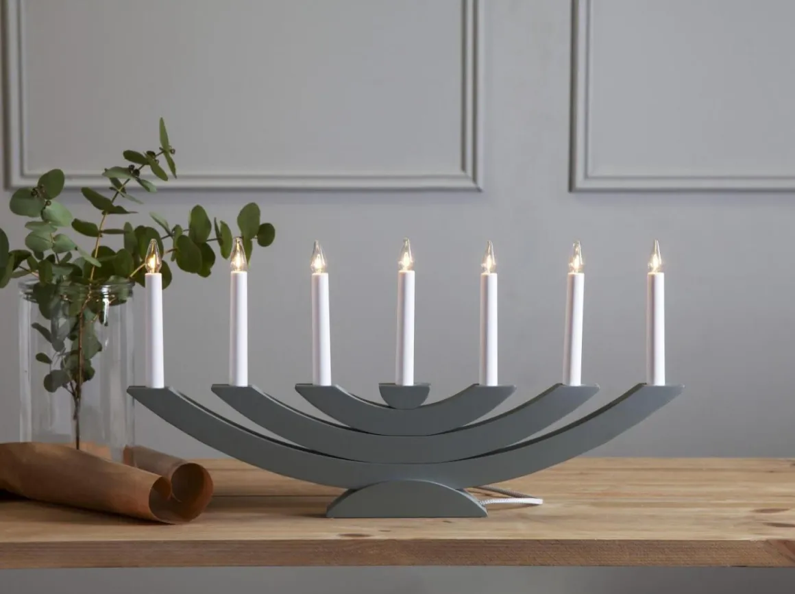 Härliga Navida, en ljusstake som verkligen får synas och ta plats. Ett traditionellt formspråk i ny modern tappning. Här ser du Navida i dimgrå/mist grey.