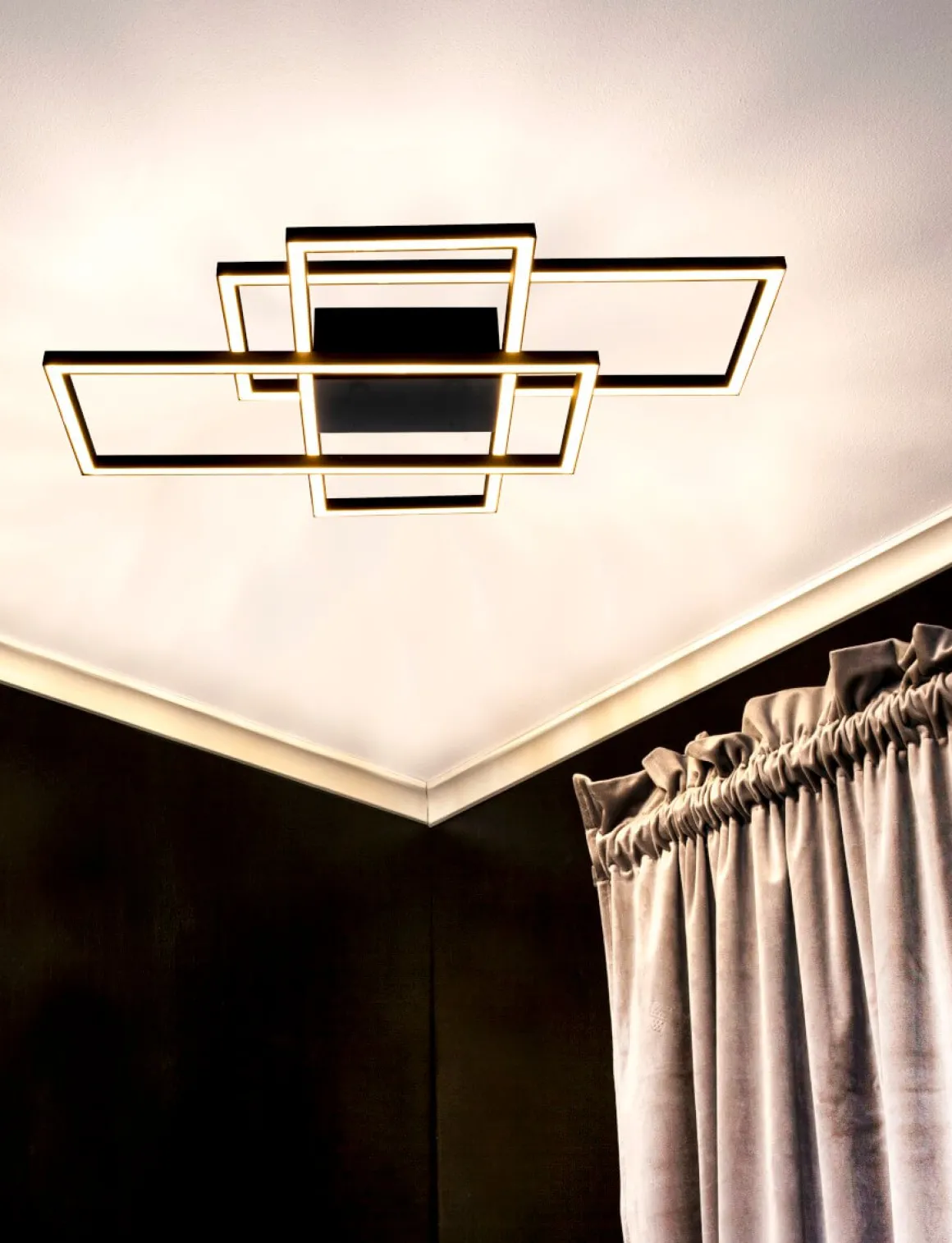 Wow så cool svart plafond! Härligt stilren modern design med rektanglar som går över varandra. New York är en plafond för dig som vill att lampan ska vara en del av inredningen och ett säkert blickfång. Självklart har underverket krokupphäng för en snabb och smidig installation.