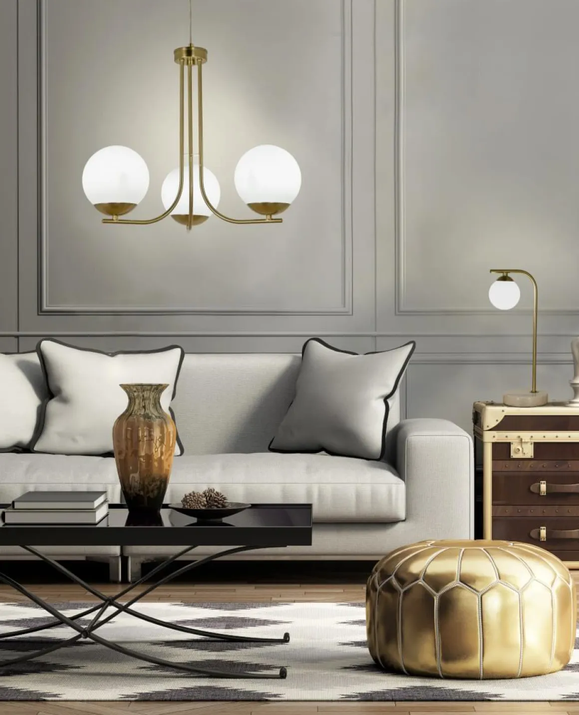 Oslagbar kombination av mässing och opalvitt glas. En riktigt ståtlig taklampa som gör sig lika bra i hallen som i köket.
