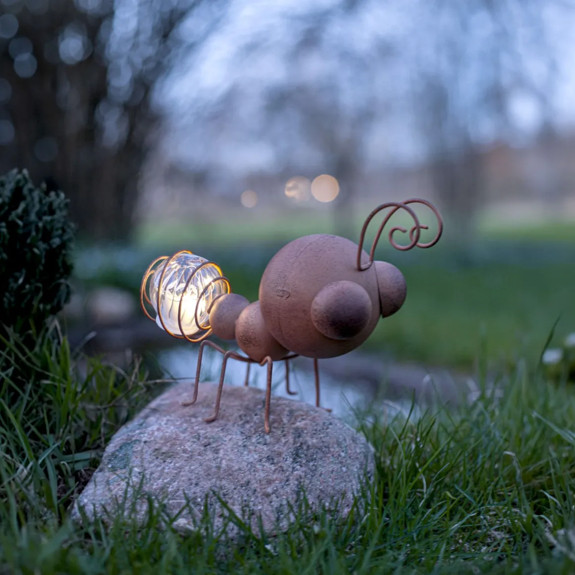 Oxida Myra är ett fint komplement till våra övriga Oxida dekorationspinnar. Denna dekorativa lilla myra är perfekt att placera i en blomsterkruka eller rabatt och är lika vacker både tänd och släckt. När mörkret faller lyser den upp med 6 små ljuspunkter som blinkar mjukt. För att säkerställa att det medföljande batteriet får optimal laddning, placera belysningen där solen kan nå panelen under dagen. En underbar detalj för att skapa stämning i din trädgård!