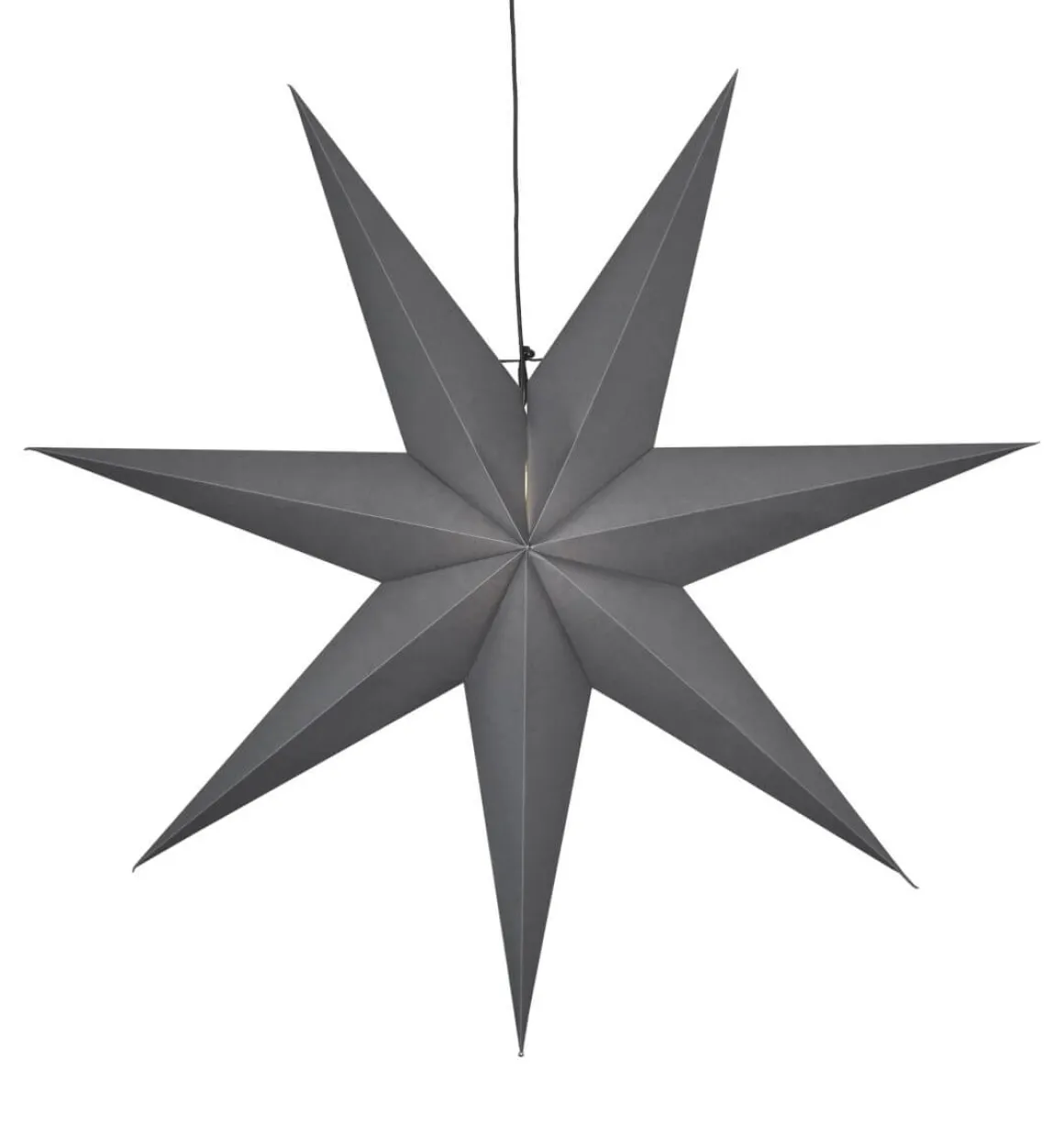 När stilrent och enkelt får vara bäst! Ozen är en helt slät stjärna i grått med svart kabel, dess enkelhet blir blir ett självklart blickfång i ditt hem!