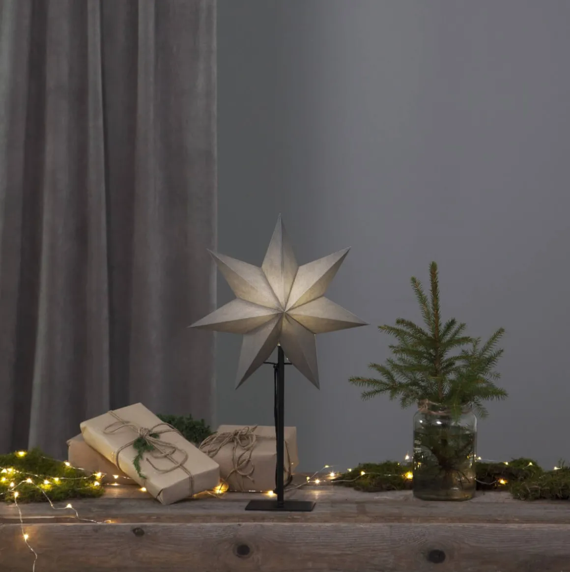 Så vacker stilren 55 cm hög stjärna i grått på en fot i svart. När enkelhet är bäst!