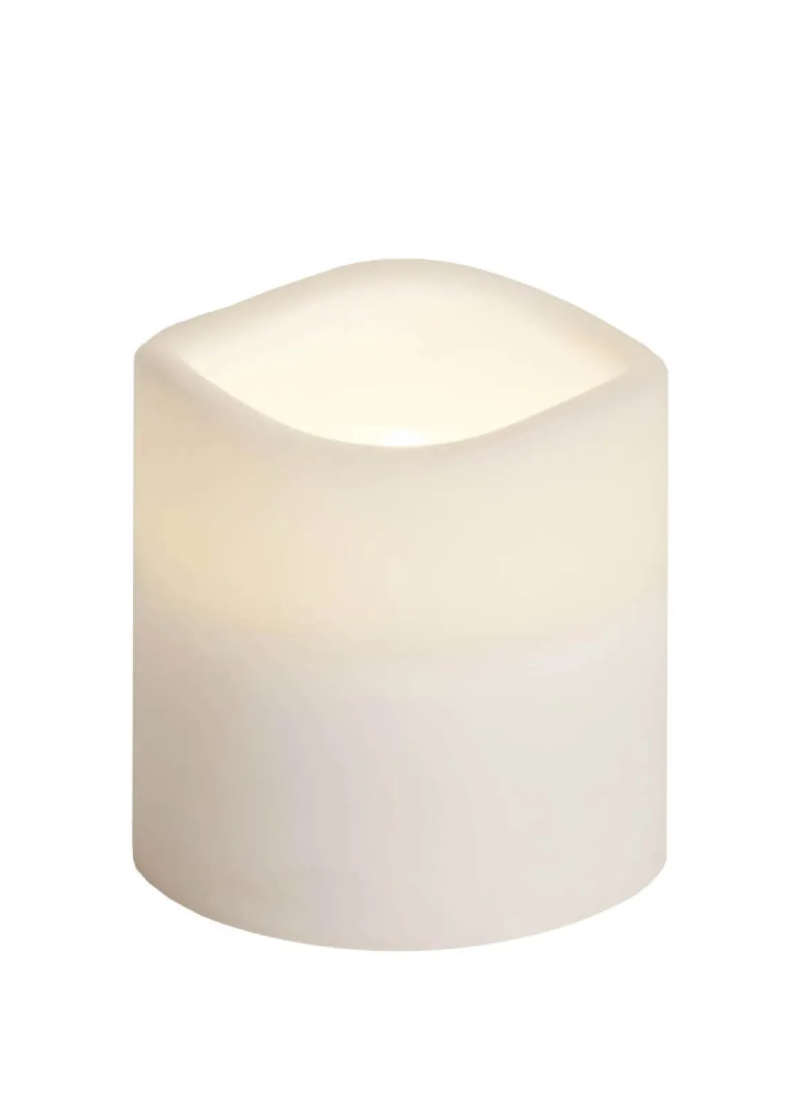 Batteridrivet blockljus i plast för att fungera utomhus såväl som inomhus. Ljuset är vitt 7.5cm högt och har en inbyggd timerfunktion som gör det enkelt att ställa in när ljuset ska lysa. Perfekt att sätta i en lykta på altanen eller trappan för en mysig känsla.