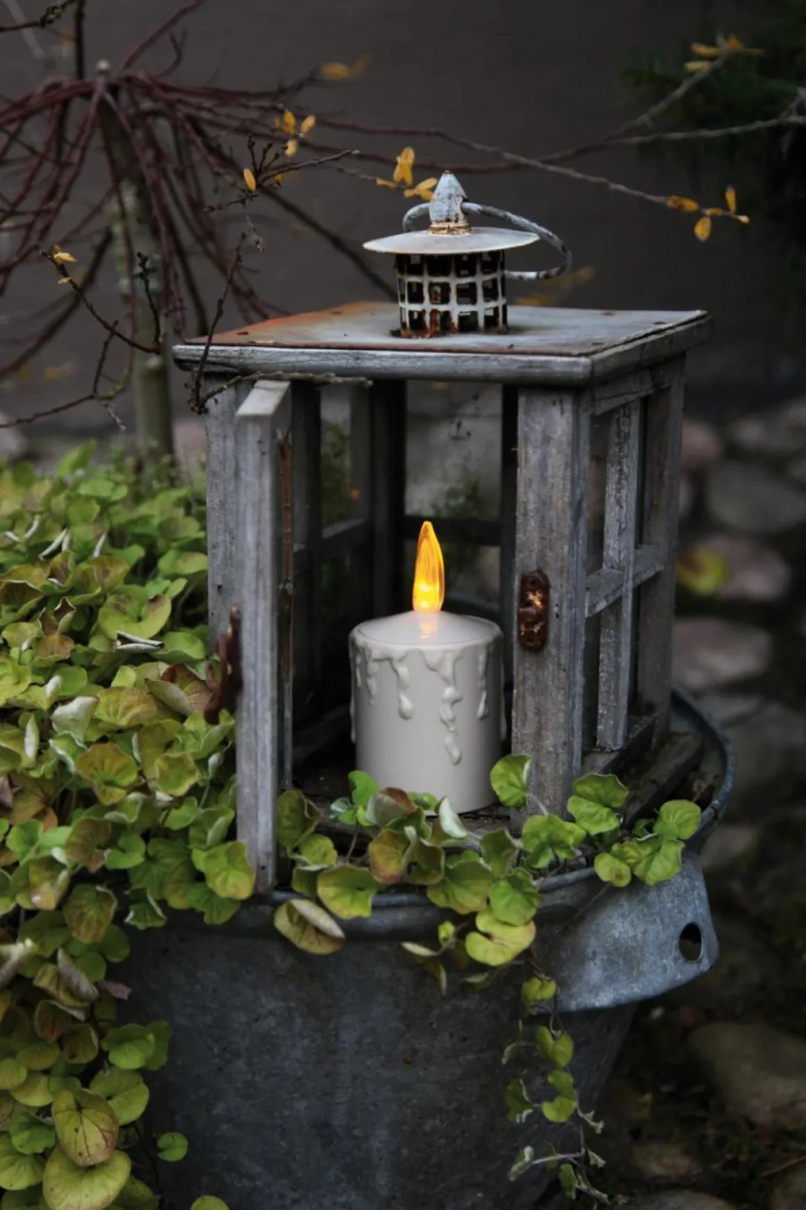Klockrent gravljus i plast med inbyggd ljussensor. Ljuset lyser bara under dygnets mörka timmar. Drivs med 2 st LR14 batterier för väldigt lång drifttid!
