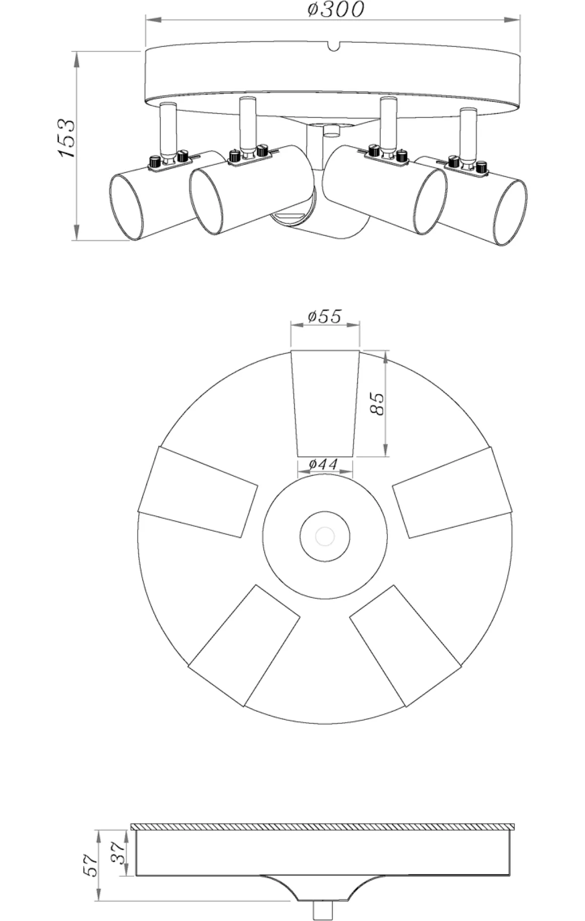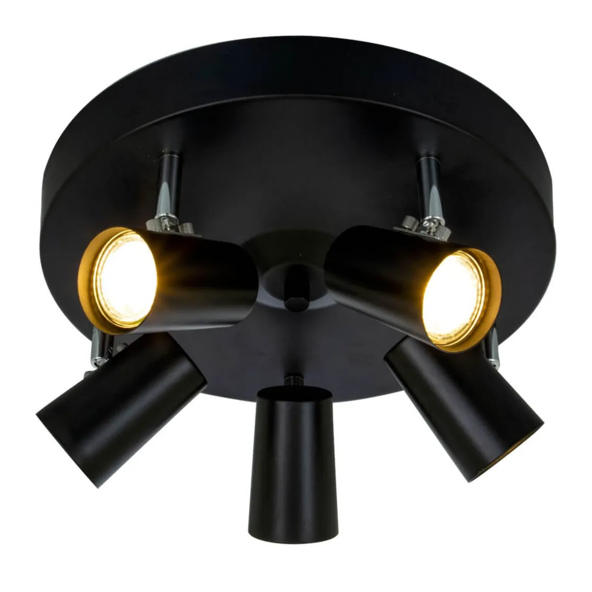 Perfekt basspotlight från Aneta med krokupphäng och tre riktbara spotlights i svart. Här ser du Pilot som en rund taklampa men den finns även som en rak skena och som en rund med 3 lampor.
