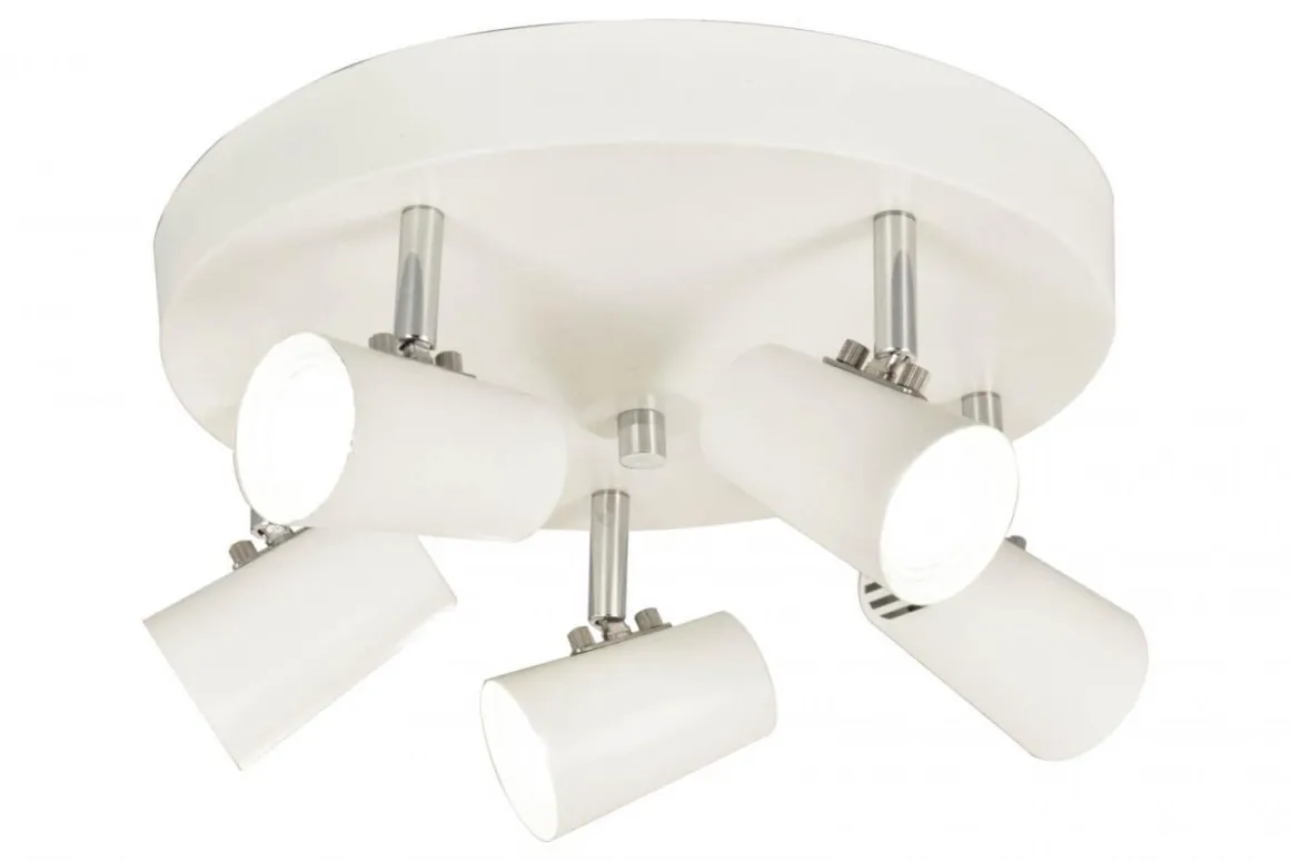 Perfekt basspotlight från Aneta med krokupphäng och fem riktbara spotlights i vitt. Här ser du Pilot som en rund taklampa men den finns även som en rak skena.