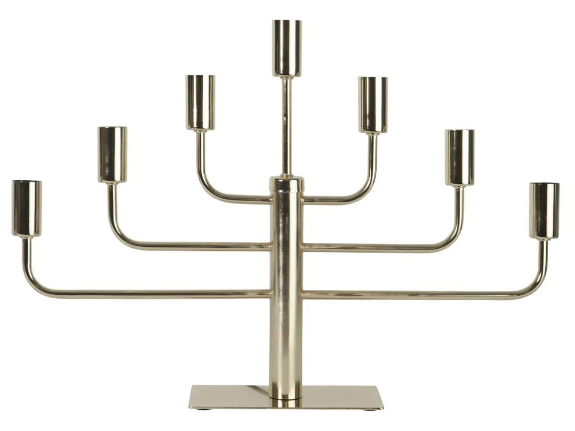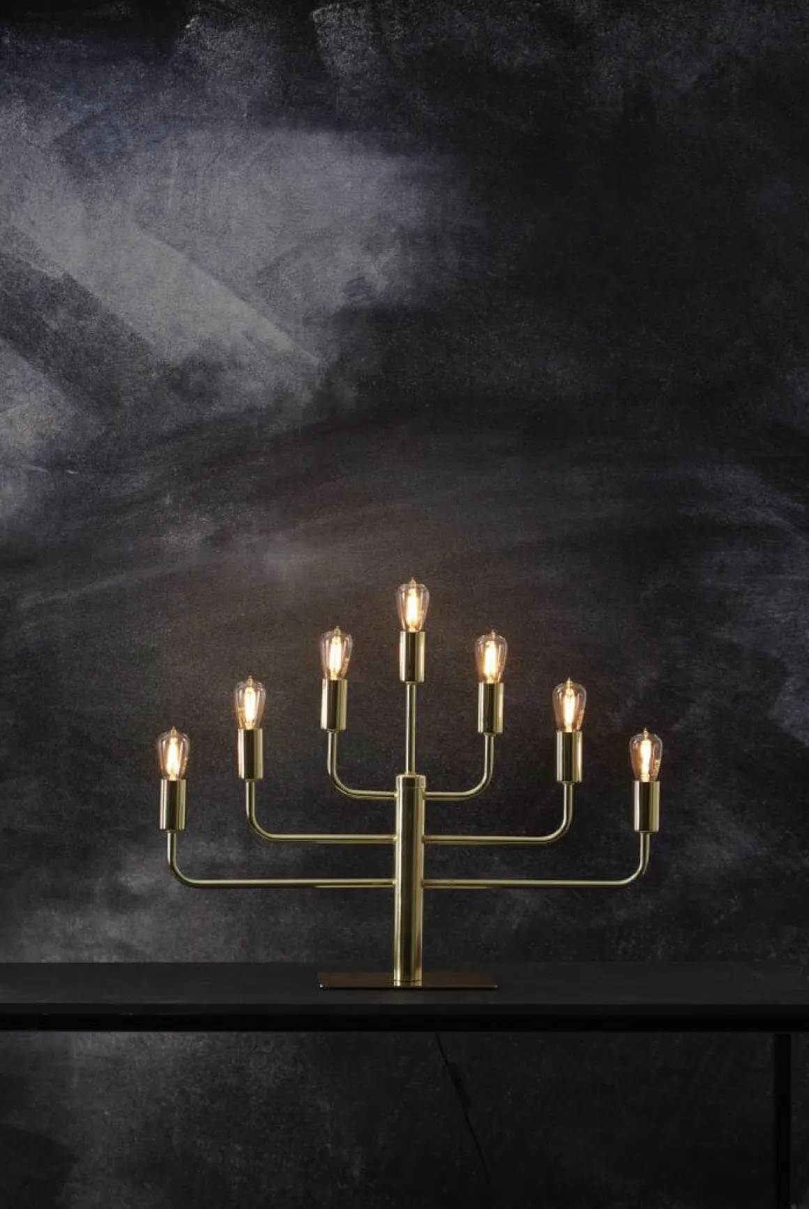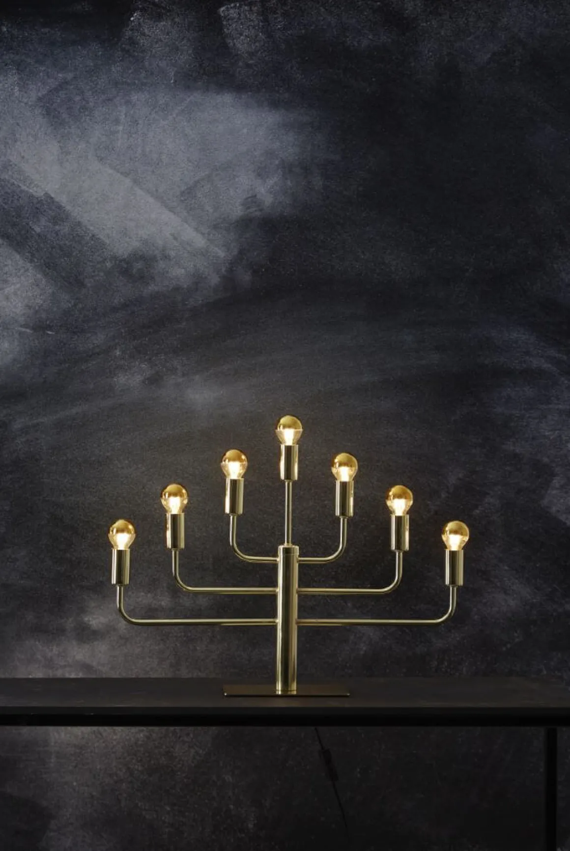 En tuff ljusstake i Mässing för den som vågar ta ut svängarna! Med 7 stycken E14 ljuskällor bestämmer du själv vilken typ av lampa och stämning som önskas. Det finns många varianter, bara att börja designa som du vill ha det!