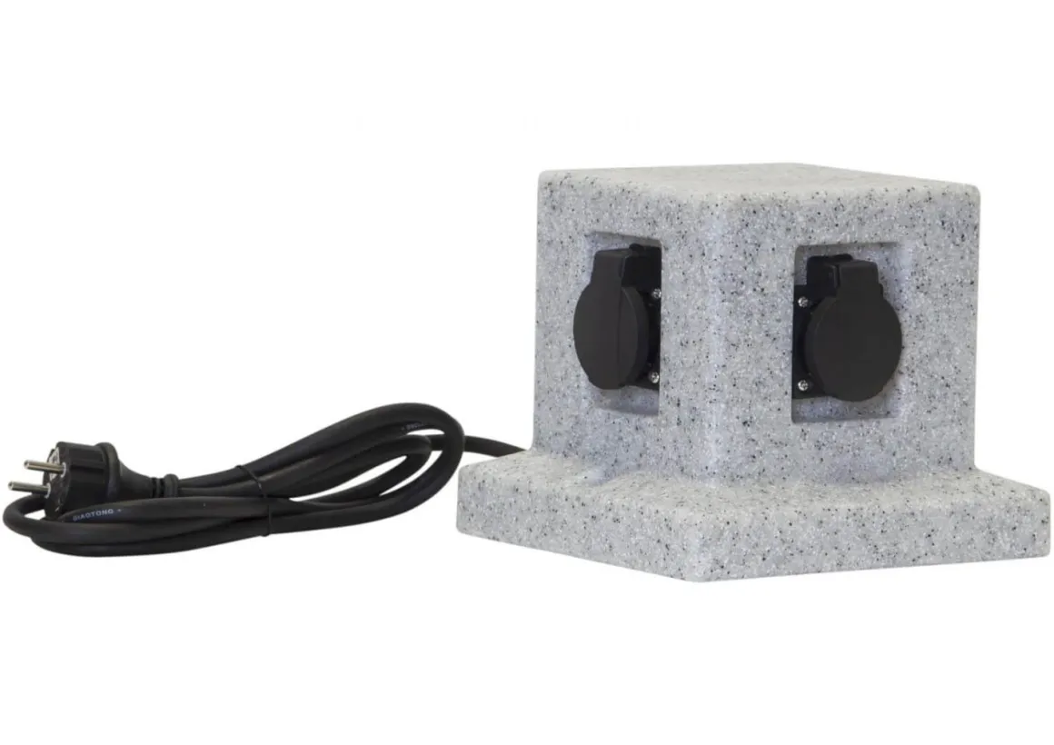 Trött på tråkiga förgreningsdosor? Vem är inte det? Vi välkomnar Plugge till sortimentet! En liten förgreningsbox i konststen med plats för 4 stycken kontakter. Perfekt på uteplatsen.